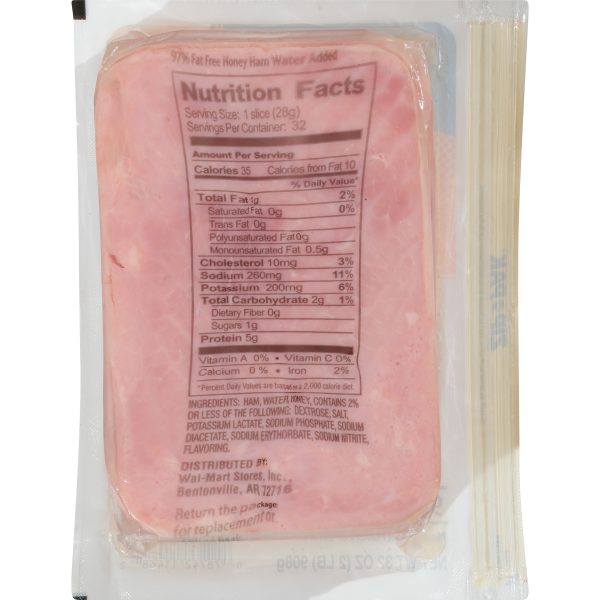 Start off the perfect sandwich with Great Value Honey Ham. This deli-style ham is perfect for quick and easy meals you can enjoy at home, in office or on the go. Pile high between your favorite bread and add all your favorite toppings like cheese, tomatoes, lettuce, onions, mayo, mustard, ranch and more. Serve with a side of chips, salad or fruit for a tasty and wholesome lunch. This family size package 32 slices, making it easy to stock up for the whole week or for the whole family. This sandwich meat is great for health conscious individuals as it is 97% fat free, is USDA inspected, and is made with no artificial flavors or colors. It comes in a zip-pak to ensure your deli is fresh after every use. Enjoy the fresh from the deli taste with Great Value Honey Ham.Great Value products provide families with affordable, high-quality grocery and household consumable options. With our wide range of product categories spanning grocery and household consumables, we offer you a variety of products for your family’s needs. Our products are conveniently available online and in Walmart stores nationwide, allowing you to stock up and save money at the same time.