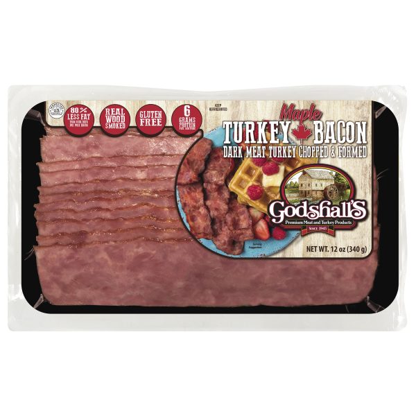 Godshall’s Sliced Maple Smoked Turkey Bacon, 12 oz., 12 pieces per pack.