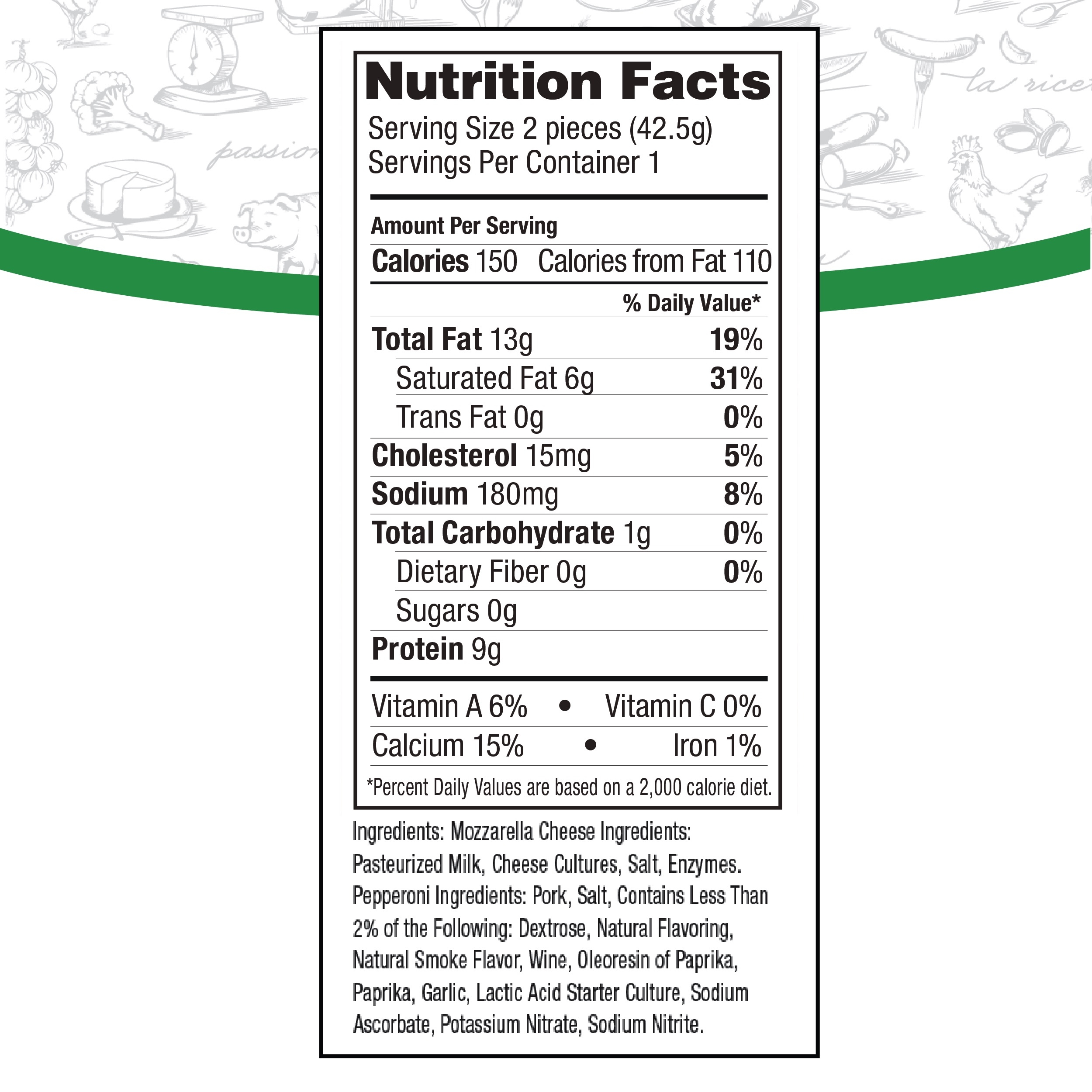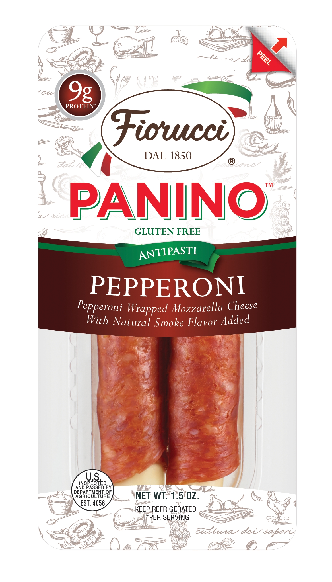 Sometimes the simplest foods are the most enjoyable. It doesn’t get much less complex than Fiorucci Paninos. Offering a full of contrast of flavors and texture, our pepperoni has a smoke flavor and peppery zests of paprika and garlic, that accompany every bite of the aged and cured slices. It has an assertive flavor with robust, spicy, and salty flavors and secondary smoky, peppery notes. It provides an outstanding accompaniment for the fresh, cool mozzarella that is inside. While they are absolutely delicious enough to enjoy on their own, our panino is ideal to serve as the centerpiece of a meat and cheese snack tray at your next party. They are easy-to-serve and are a great way to start the meal in traditional Italian style as an antipasto. These protein-packed snacks are ideal for everyone from kids to enjoy after school or you to have with your favorite wine. You can even add it to a selection of fresh fruits and vegetables for a delicious last-minute appetizer. Just because you might not be able to make it to Italy right now, doesn’t mean you shouldn’t eat like an Italian.Fiorucci has been delivering the true taste of Italy through specialty meats for over 170 years. We use authentic, old-world recipes, hand-trimmed cuts of pork, and the finest ingredients to give you an extensive line of slowly aged Italian meats. The result? Perfection.*See full ingredient list
