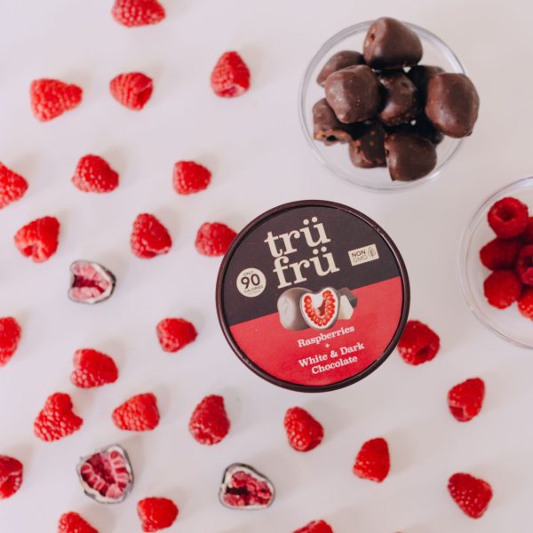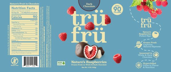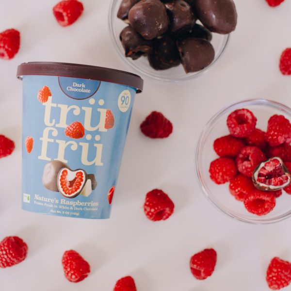 There is a berry special space in your heart that has been waiting to be filled with Tru Fru Dark Chocolate Raspberries. Enjoy the healthy, heavenly goodness of Tru Fru’ s Nature’s Raspberries. Our raspberries are frozen fresh to lock in all the nutrients and flavors present at peak ripeness. Our berries are then immersed in delicious and sustainable dark chocolate, making indulgence natural. That is why it is always been so tricky to get those four servings of fruit in every day that space has been reserved for Tru Fru.