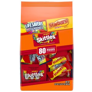 Move over jellybeans! This gummy candy and chewy candy assortment is just what the Easter Bunny ordered. Fill Easter eggs and Easter baskets with SKITTLES, STARBURST & LIFE SAVERS Fun Size Bulk Variety Pack. This 80-piece bag of chewy and gummy Easter candy is perfect for fulfilling all of your Easter needs and tastebuds. Enjoy individually wrapped flavors of SKITTLES Original Fun Size Chewy Candy, STARBURST Fun Size Chewy Candy, and LIFE SAVERS Big Ring 5 Flavors Gummy Candy. Whether decorating your favorite dessert or enjoying them on their own, there are many fun ways to add a burst of juicy, fruity flavor to your Easter holiday. From party favors to candy dishes, SKITTLES, STARBURST & LIFE SAVERS are essential to your Easter candy spread. This Spring, share the treat that will make everyone’s Easter much sweeter. Hop to it and order SKITTLES, STARBURST & LIFE SAVERS Easter Candy today.