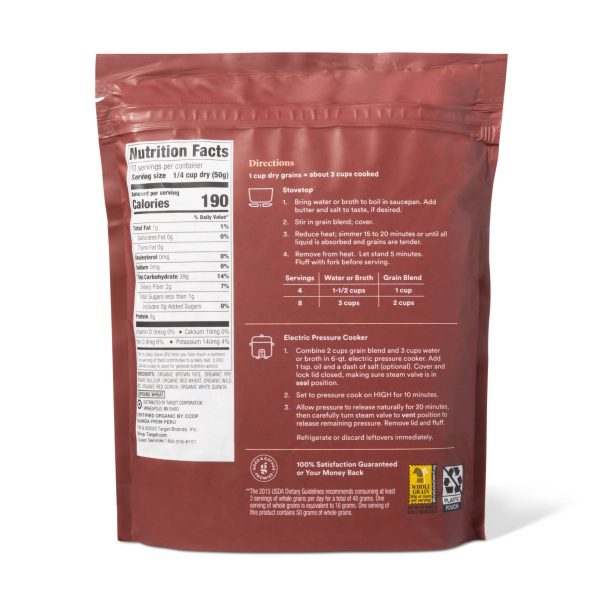 u0026bull;50g whole grains* and 2g fiber per servingu003cbru003eu0026bull;USDA Organic, non-GMOu003cbru003eu0026bull;Kosher Star Ku003cbru003eu0026bull;Blend of organic brown rice, rye, wheat, wild rice and quinoa