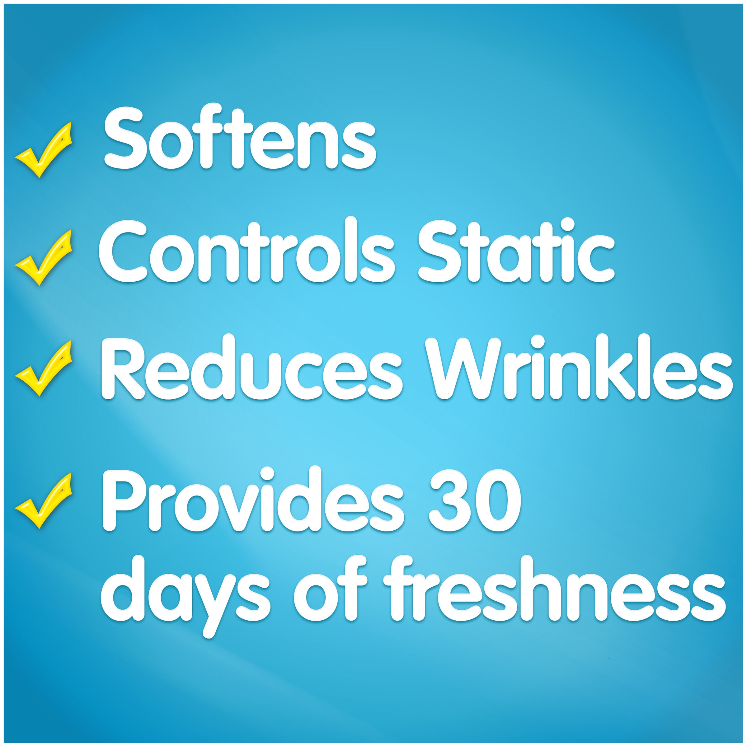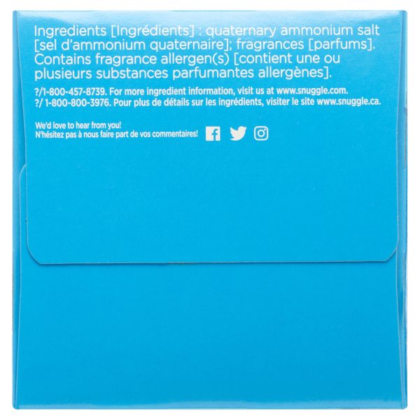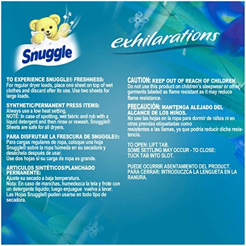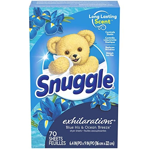Delight your senses with Blue Iris & Ocean Breeze scent, a fresh burst of blue Iris and bamboo flowers mixed with crisp green apple in combination with soft bamboo and woody notes. In addition to using in the dryer to make your clothes feel softer, fabric softener sheets can also be used in a variety of places like closets, gym bags, suitcases, and cars to make them smell fresh. For long-lasting freshness and static reduction, add a Snuggle brand dryer sheet to every load you dry. Place the sheet on top of wet clothes and start the dryer cycle as usual. Discard after use. Safe for standard and HE washing machines. Includes one box of 70 dryer sheets.