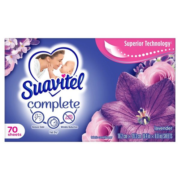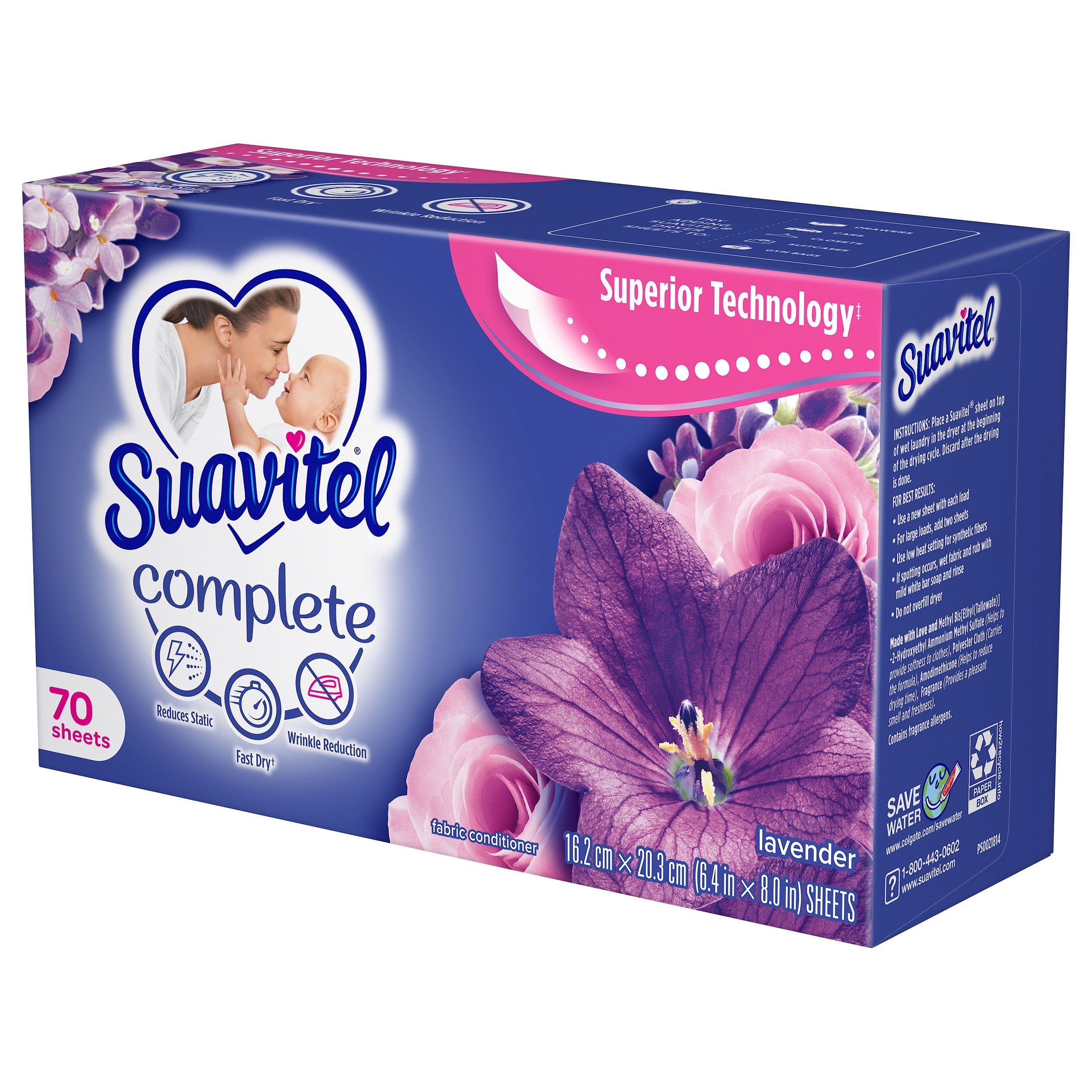 Suavitel Complete Laundry Dryer Sheets, Lavender Scent, 70 Count
