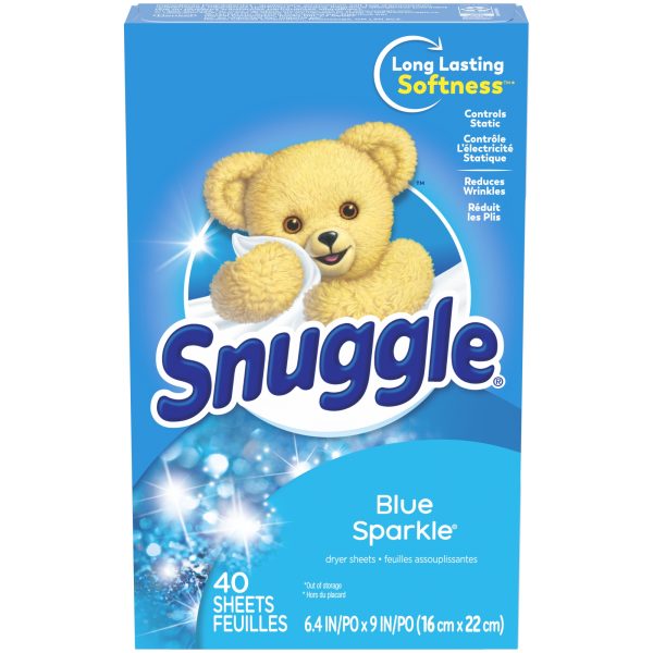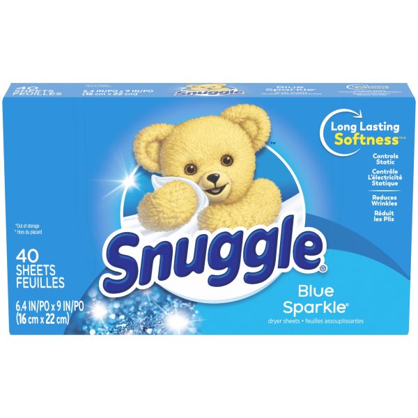 Snuggle’s original Blue Sparkle scent is a fresh and clean blend of white floral and bright green citrus notes that snuggle up to warm woody notes and soft musk for a comforting, long-lasting freshness your family will love. In addition to using in the dryer to make your clothes feel softer, dryer sheets can also be used in a variety of places like closets, gym bags, suitcases, and cars to make them smell fresh. For long-lasting freshness and static reduction, add a Snuggle brand dryer sheet to every load you dry. Place the sheet on top of wet clothes and start the dryer cycle as usual. Discard after use. Safe for standard and HE dryers. Includes one box of 40 dryer sheets.