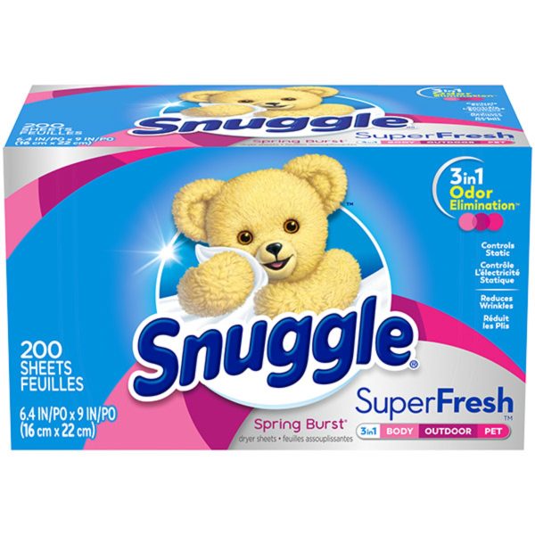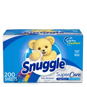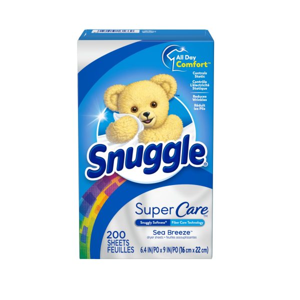 New Snuggle SuperCare helps you enjoy all day comfort in the clothes you love by using specially formulated sheets with fiber care technology that reduces wrinkles and controls static. For even more Freshness, also use Snuggle SuperCare Liquid Fabric Softener in your wash. Warning: Do not use this product: On fluffier fabrics such as fleece or terry cloth as it may increase the flammability of these fabrics. On children’s sleepwear or other garments labeled as flame resistant as it may reduce flame resistance. This package includes one box of 200 Snuggle SuperCare dryer sheets in Sea Breeze scent, enough for 200 loads.