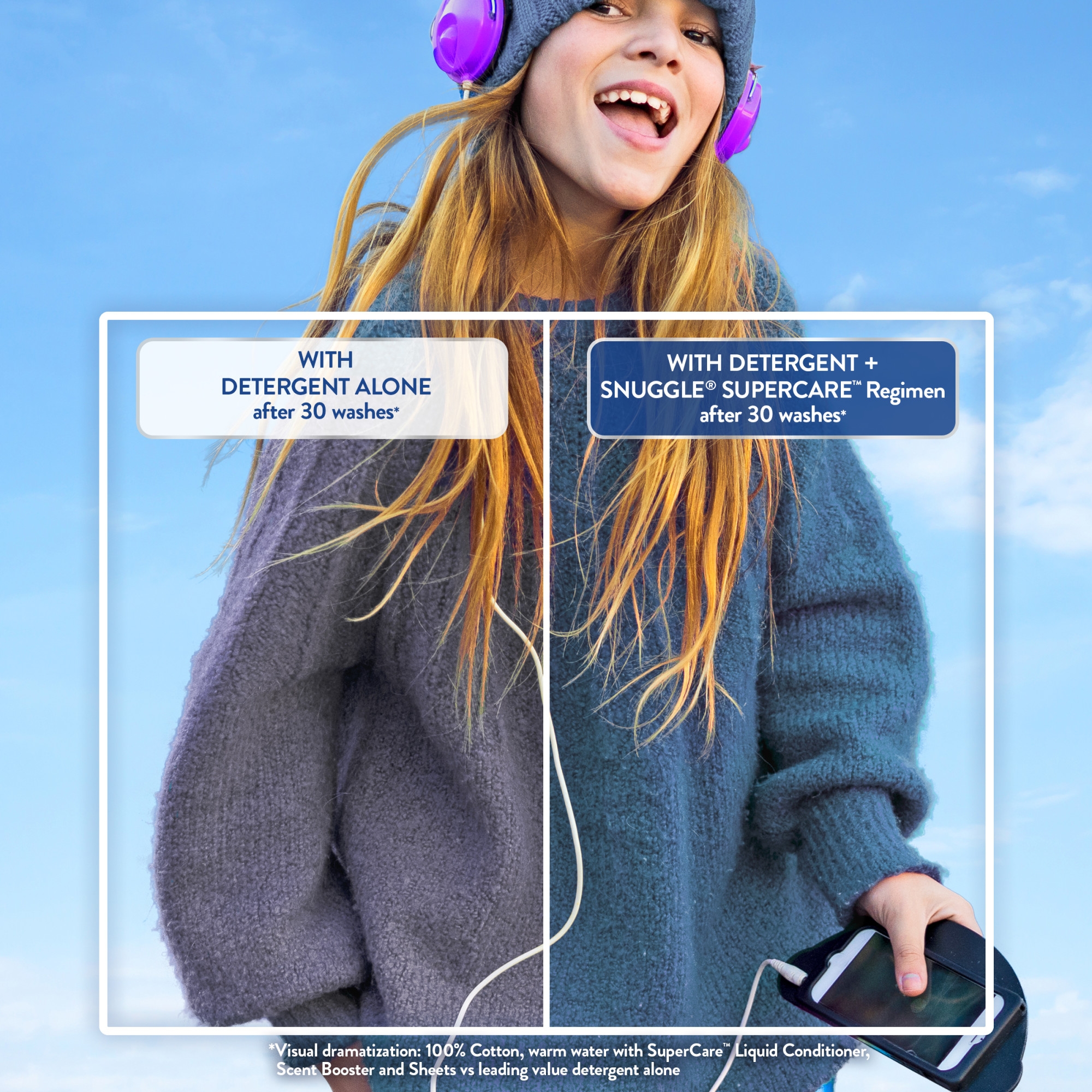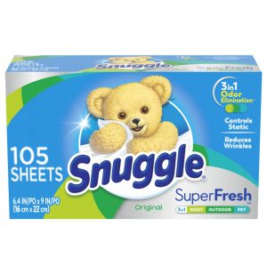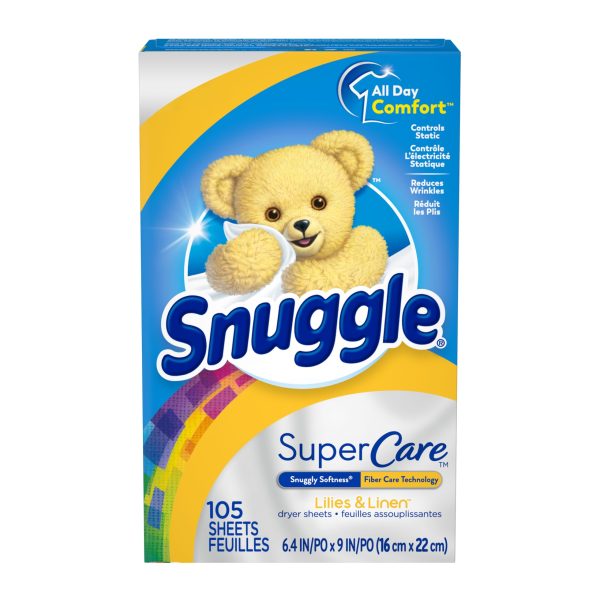 New Snuggle SuperCare helps you enjoy all day comfort in the clothes you love by using specially formulated sheets with fiber care technology that reduces wrinkles and controls static. For even more Freshness, also use Snuggle SuperCare Liquid Fabric Softener in your wash. This package includes one box of 105 Snuggle SuperCare dryer sheets in Lilies and Linen scent, enough for 105 loads.