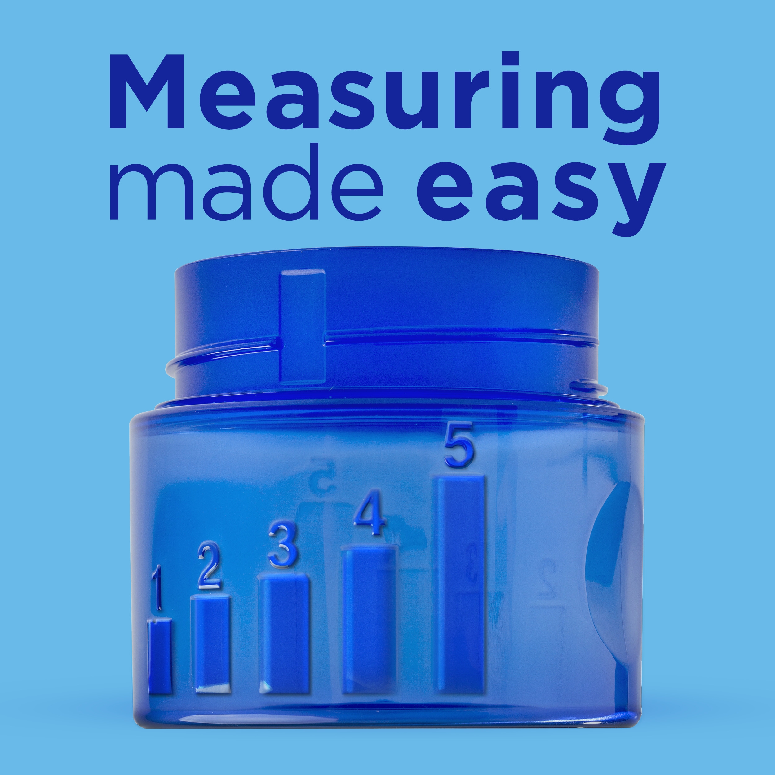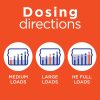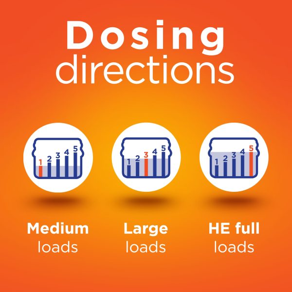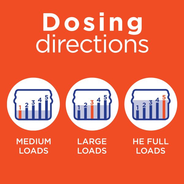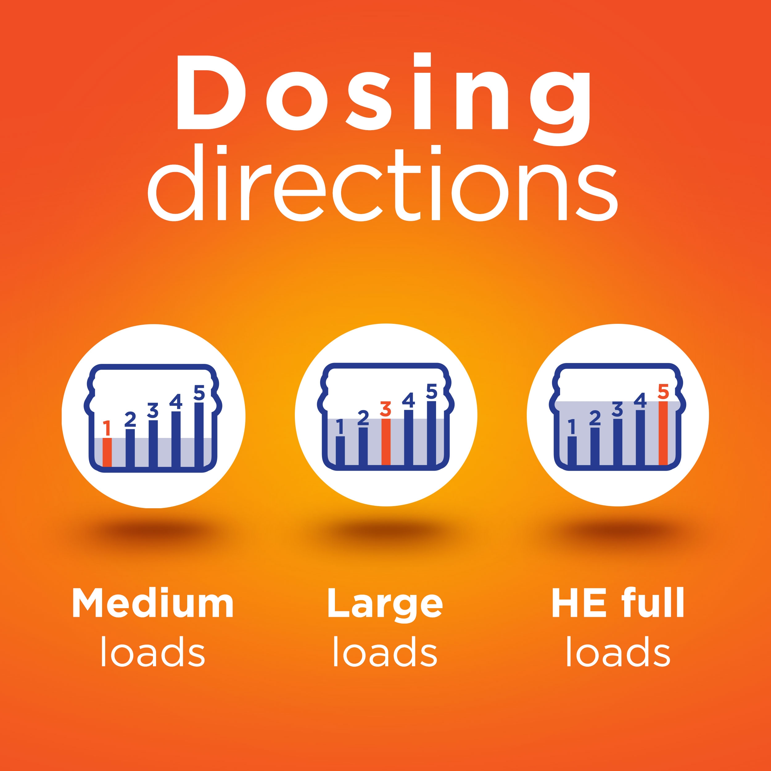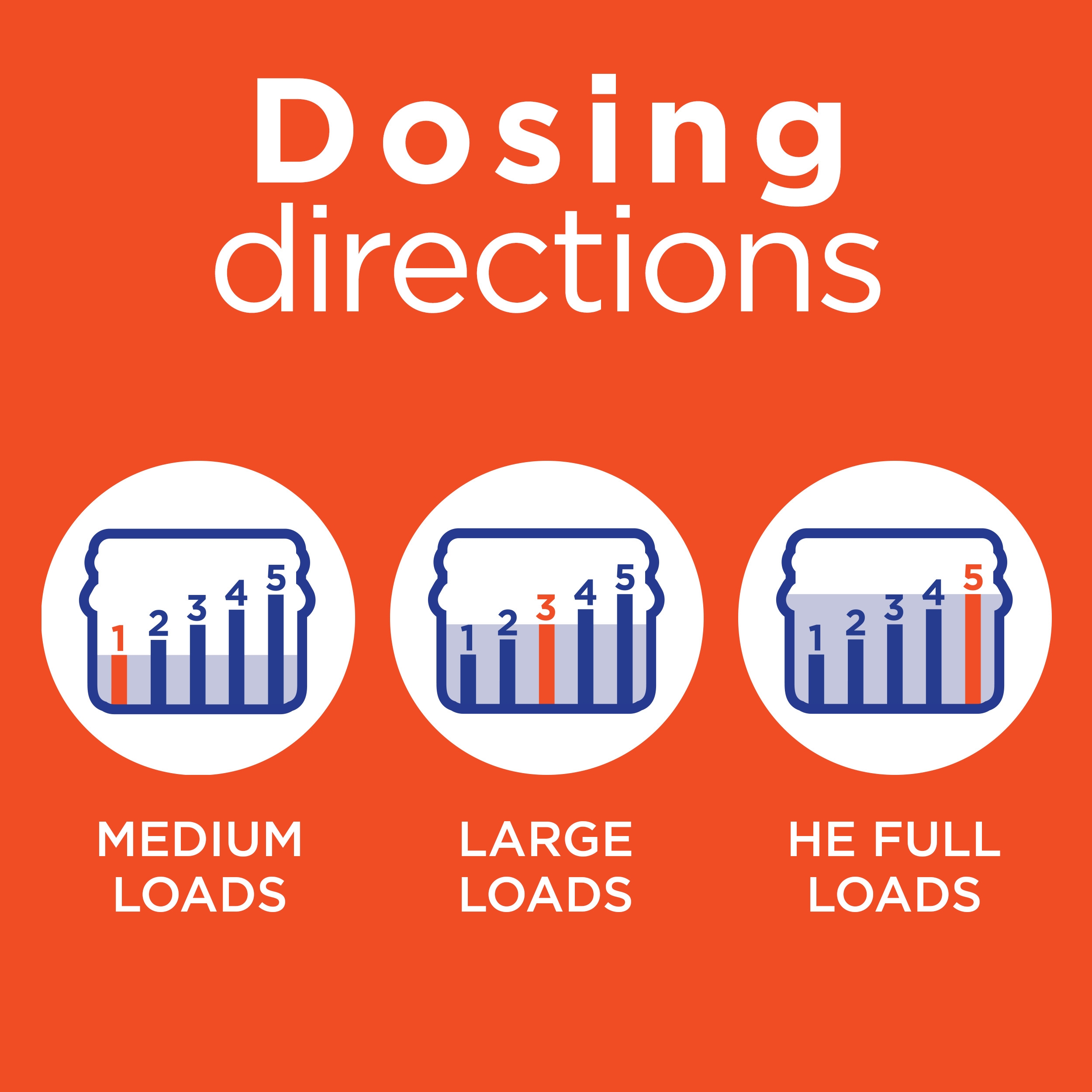 Measure your loads with cap. For medium loads, fill to bar 1. For large loads, fill to bar 3. For HE full loads, fill to bar 5. Add clothes, pour into dispenser, start washer.