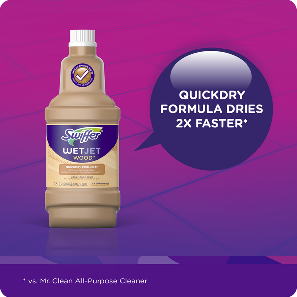 Swiffer WetJet Multi-Surface Floor Cleaner is a pre-mixed cleaning solution made specially for the Swiffer WetJet all-in-one power mop. It’s safe* and fast drying formula dissolves dirt and tough sticky messes to reveal the natural beauty of your floors.
