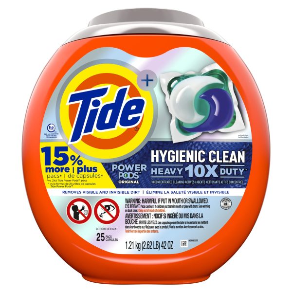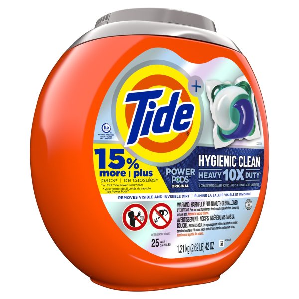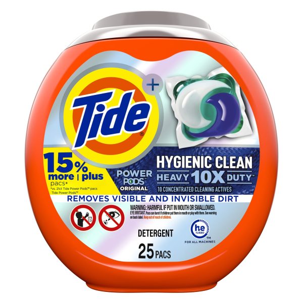 Tide Hygienic Clean Heavy 10x Duty Power Pods Laundry Detergent Pacs, Original, 25 Ct