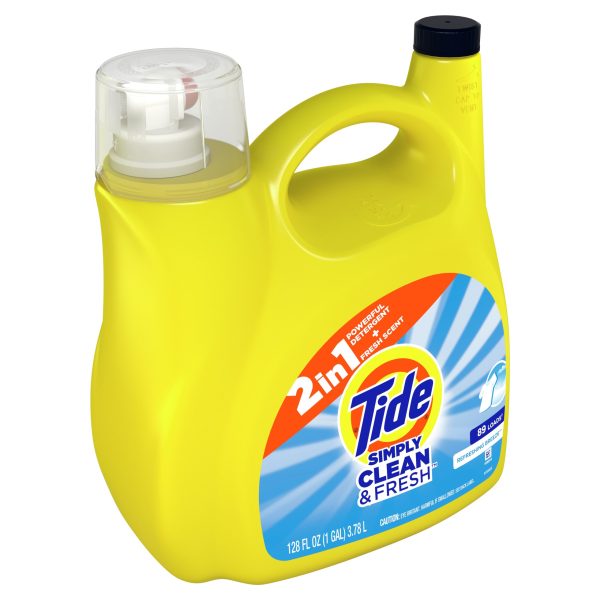 Tide Simply Clean and Fresh liquid laundry detergent has 2X the baking soda power* to target tough odors deep in the fibers of your clothes. It is now more concentrated to provide more stain removal and freshness and less water*. From America’s #1 detergent,** to cover your many laundry needs.