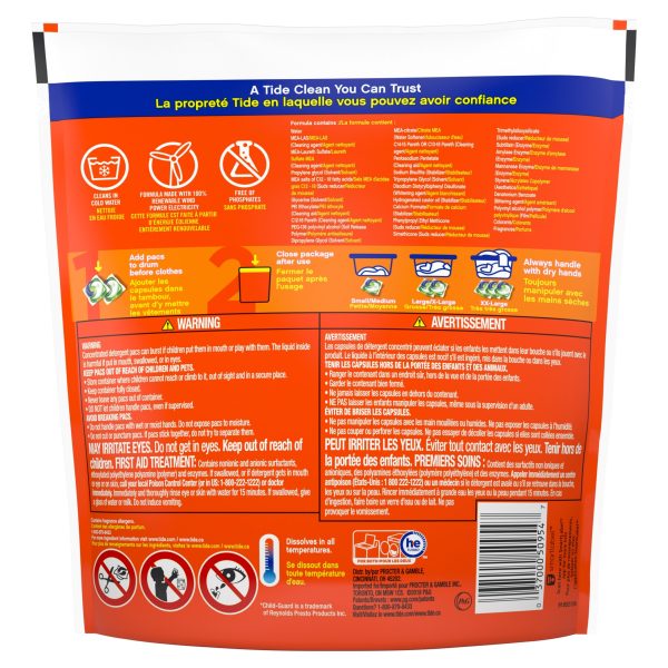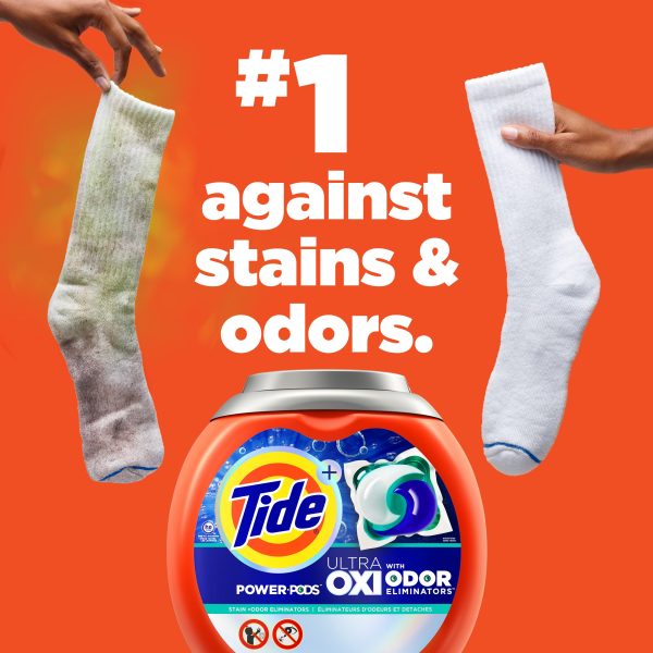 There are two things that let you know your clothes are clean: they look good, and they smell good. Now, you can get the confidence of both benefits in one laundry detergent with Tide Power PODS Ultra Oxi with Odor Eliminators. It’s the perfect solution for busy families who do a lot of laundry, and want results they can trust every time. No matter how big or how dirty, one Tide Power PODS with OXI Odor does the work of two regular Tide laundry PODS to get the job done right the first time. No pre-treating, no scrubbing, no last-ditch laundry hacks, just a true Tide clean. But it’s about more than fighting stains and odors. Tide Power PODS Ultra OXI Odor is designed to make your life easier. Since Tide Power PODS Ultra OXI bring cleaning and odor-fighting together in one, you get drop-in-and-walk-away convenience with a trusted Tide clean every time. Place the Tide PODS in your washing machine drum, then add your clothes, and get the certainty of knowing you’ll get that clean in any machine, even in cold water, even if you don’t normally use an HE detergent. That’s not only better for your sense of clean, it’s also better for your energy bill, the planet, and your wallet. Get the power and the confidence of a Tide detergent clean every time. Removes stains and odors without pre-treating or scrubbing