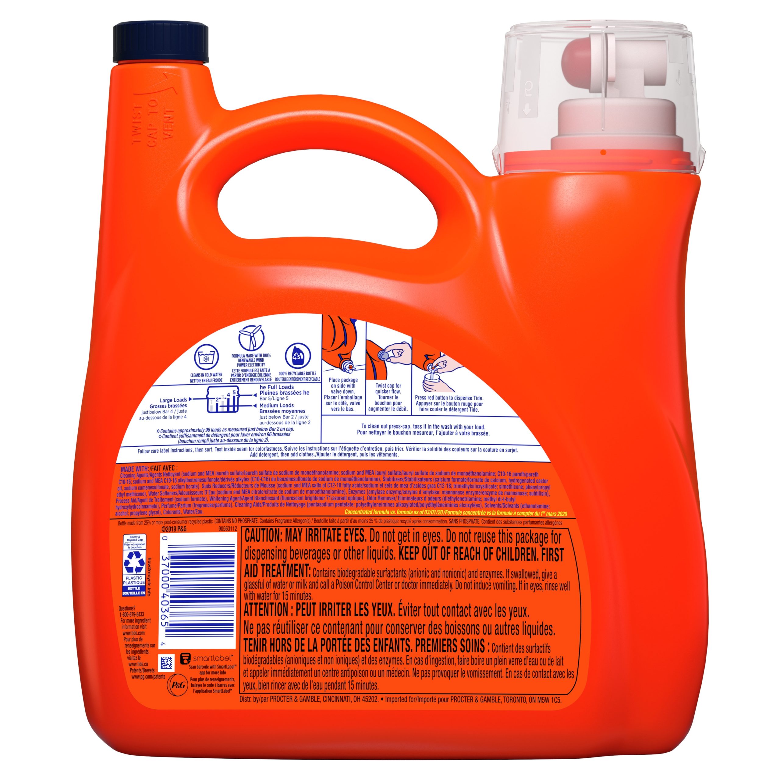 America’s #1 detergent*, now even better. This Tide liquid laundry detergent now has 10x the cleaning power**. The improved formula is reengineered to attack tough body soils.