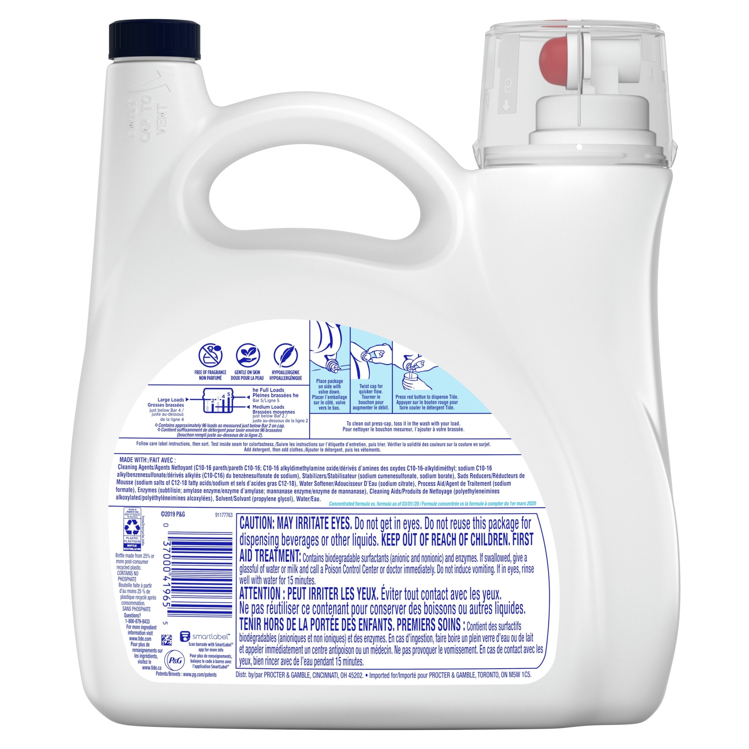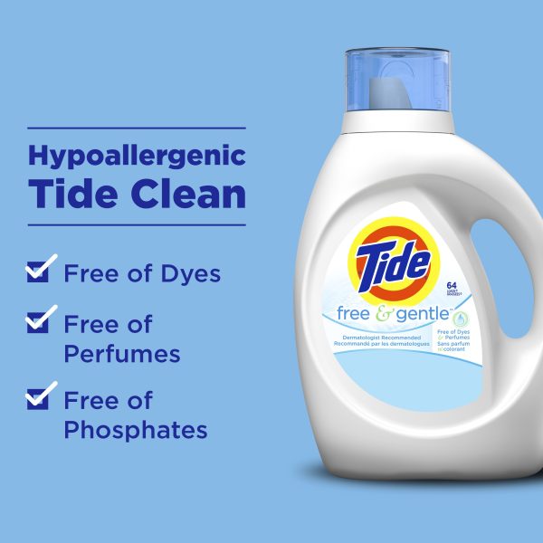 Have peace of mind with Tide Free & Gentle Liquid Laundry Detergent that will keep your clothes brilliantly clean and your family’s skin safe. Tide Free and Gentle is a powerful hypoallergenic laundry detergent that is free of dyes and perfumes. It removes more residue from dirt, food and stains than the leading Free detergent.*
