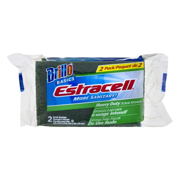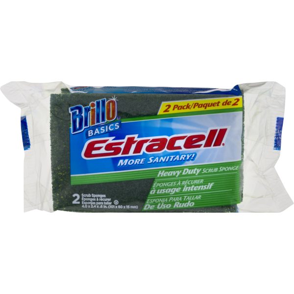 Brillo Basics Estracell Heavy Duty Scrub Sponge. The more sanitary, dual-sided Brillo Estracell Heavy Duty Scrub Sponge easily removes burnt-on foods. It’s made with unique fibers that dry faster. We made a different sponge for all your surfaces, so you can clean up without spreading bacteria around. This, plus the fact that bacteria won’t grow on our Estracell sponges, makes them more sanitary. That’s why Brillo is one of the most trusted names in household cleaning. This sponge dries quickly and is more sanitary it won’t support bacteria growth naturally. Removes tough messes and rinses 99.9% clean with two rinses so you won’t need to clean it in the dishwasher