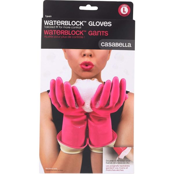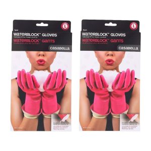Casabella Waterblock Rubber Latex Gloves with Turnback Cuff Premium Pink Large, 2 Pairs