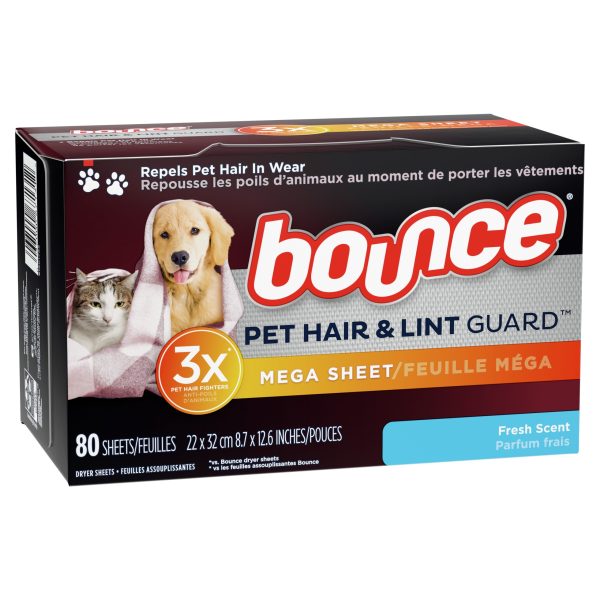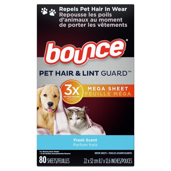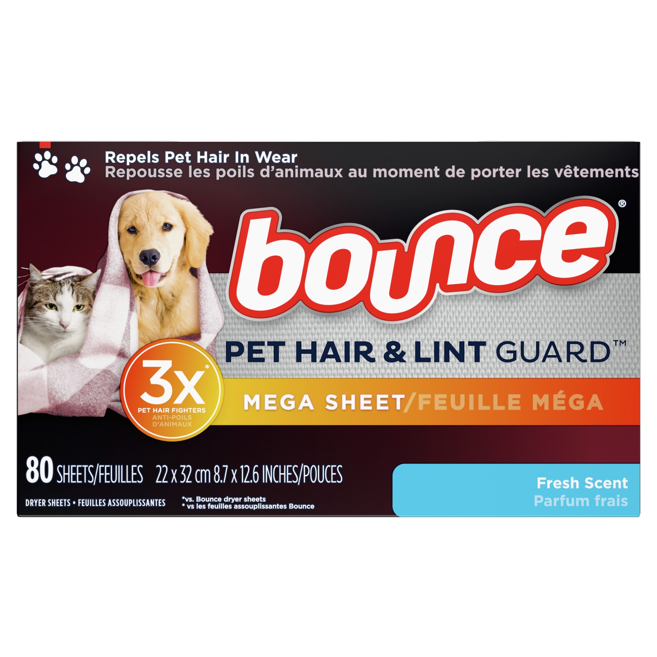Bounce Pet Hair and Lint Guard Mega Dryer Sheets, Fresh Scent, 80 ct