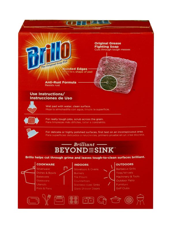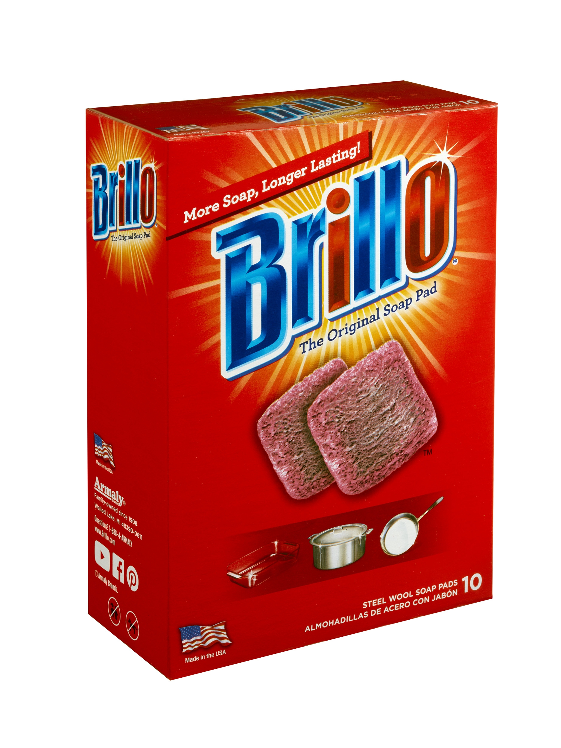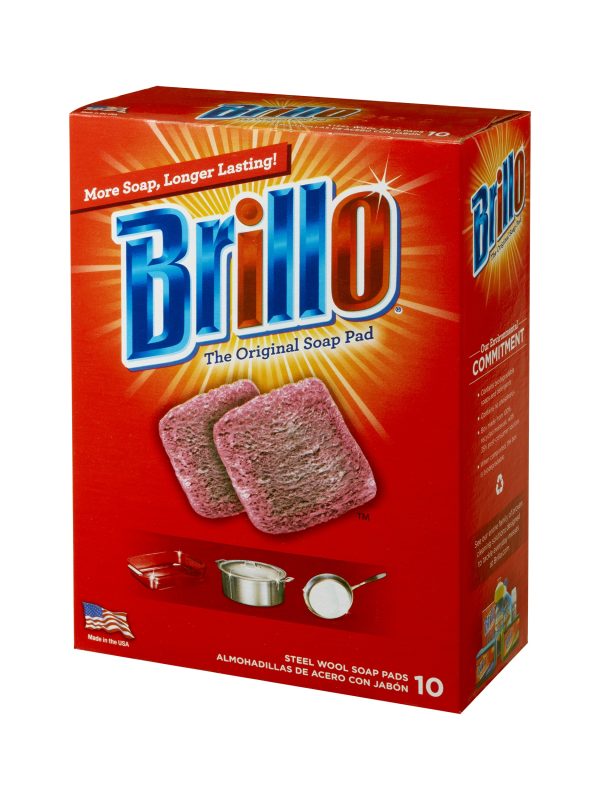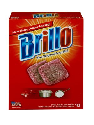 Brillo Steel Wool Soap Pads, Original Scent. Powers Out Grease and Grime. These soap pads are designed to remove the toughest grease and grime. The classic square shape reaches into corners to knock out tough messes, while its unique bonded edges help maintain its iconic shape. Give it a try. The anti-rust formula restores grills, pots, and baking sheets to their former glory. That’s why Brillo is one of the most trusted names in household cleaning. A long-lasting soap pad with anti-rust formula has 29% more soap and 8% more steel wool than any other soap pad. Iconic square shape allows the soap pad’s unique bonded edges to easily reach tough messes in corners. Recyclable.