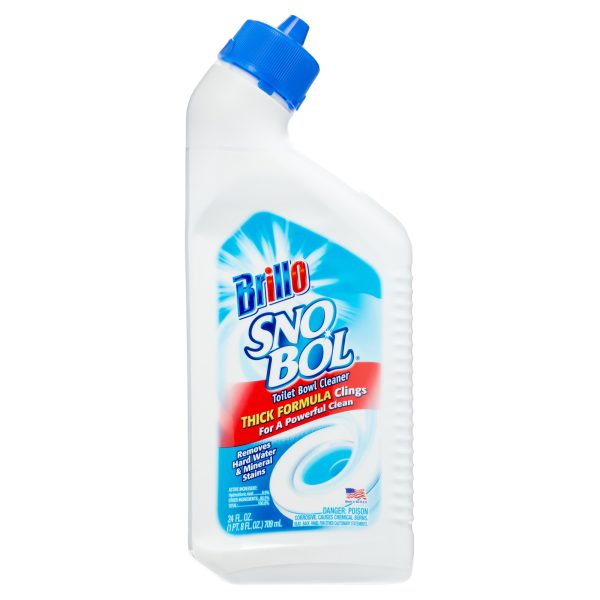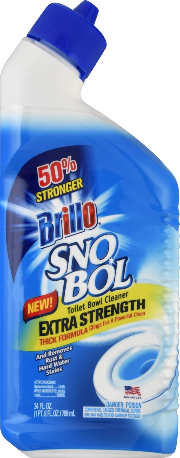 Does your bathroom pass the guest test?(TM) Brillo SnoBol toilet bowl cleaner removes hard water stains, mineral deposits, lime scale, and tough rust in your toilet. The thick blue liquid formula clings to the bowl and its 9.5% hydrochloric acid delivers a powerful clean. Regular toilet cleaners removes bacteria, but this goes above and beyond, removing rust and hard water rings with its proprietary hydrochloric acid formula while also being safe for septic tanks and pipes. That’s why Brillo is one of the most trusted names in household cleaning.
