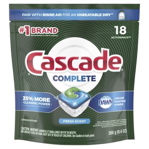 Cascade Complete ActionPacs Dishwasher Detergent, Fresh Scent, 18 Count