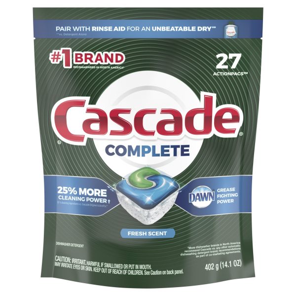 Cascade Complete ActionPacs Dishwasher Detergent, Fresh Scent, 27 Count