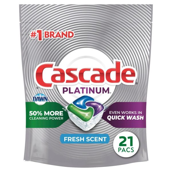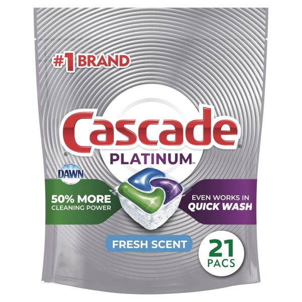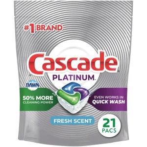 Cascade Platinum Dishwasher Pods, ActionPacs Dishwasher Detergent Tabs, Fresh Scent, 21 Ct