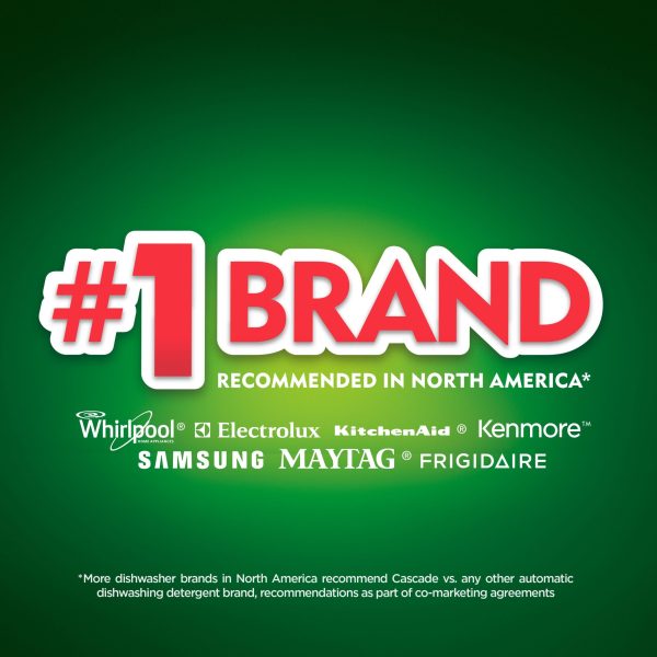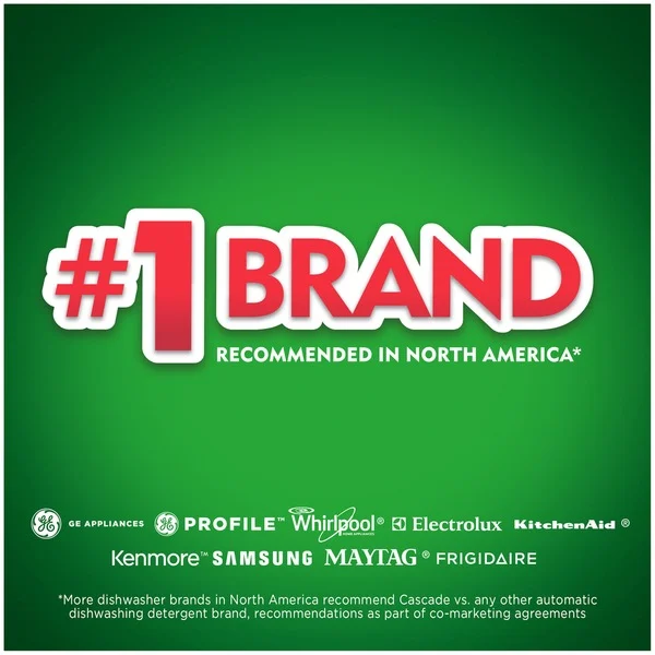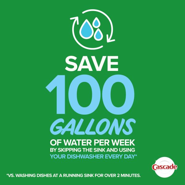 Cascade Platinum ActionPacs dishwasher detergent cleans burnt-on messes in just one wash, with no pre-wash needed. That’s because Platinum dishwasher pods has 50% More Cleaning Power* (*% cleaning ingredients vs. Cascade Complete ActionPacs) to tackle burnt-on foods. It dissolves fast to start cleaning right away, releasing the soaking power of Dawn dishwashing liquid, while food-seeking enzymes latch on and break down food into particles so small they can flow right down the drain. It’s so powerful that it even works in the Quick Wash cycle. Plus, Cascade Platinum dishwashing detergent is formulated to help prevent hard-water filming keeping your machine looking fresh and clean. Simply pop in an ActionPac and reveal a Platinum sparkle. Cascade is the #1 Recommended Brand in North America. More dishwasher brands in North America recommend Cascade vs. any other automatic dishwashing detergent brand, recommendations as part of co-marketing agreements. You can save 100 gallons of water per week by skipping the sink and using your dishwasher & Cascade ActionPacs dishwasher pods every day (vs. washing dishes at a running sink for 10 minutes per day). That s because Energy Star certified dishwashers use less than four gallons of water in one cycle, whereas a running sink can use four gallons of water every two minutes! Plus, your dishwasher doesn t need to be full to save