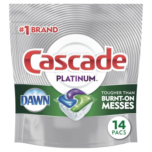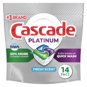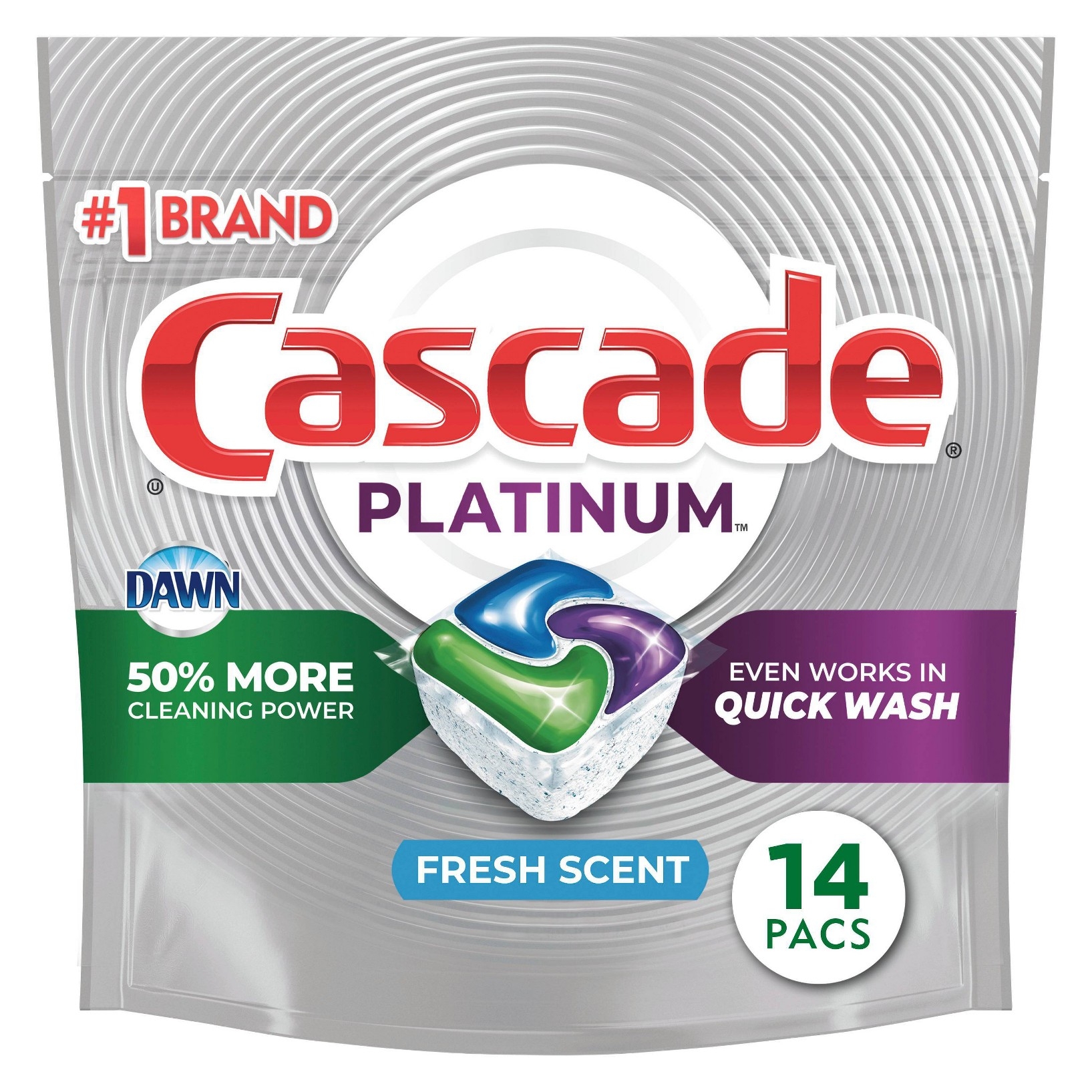 Cascade Platinum Dishwasher Pods, ActionPacs Dishwasher Detergent Tabs, Fresh Scent, 14 Ct
