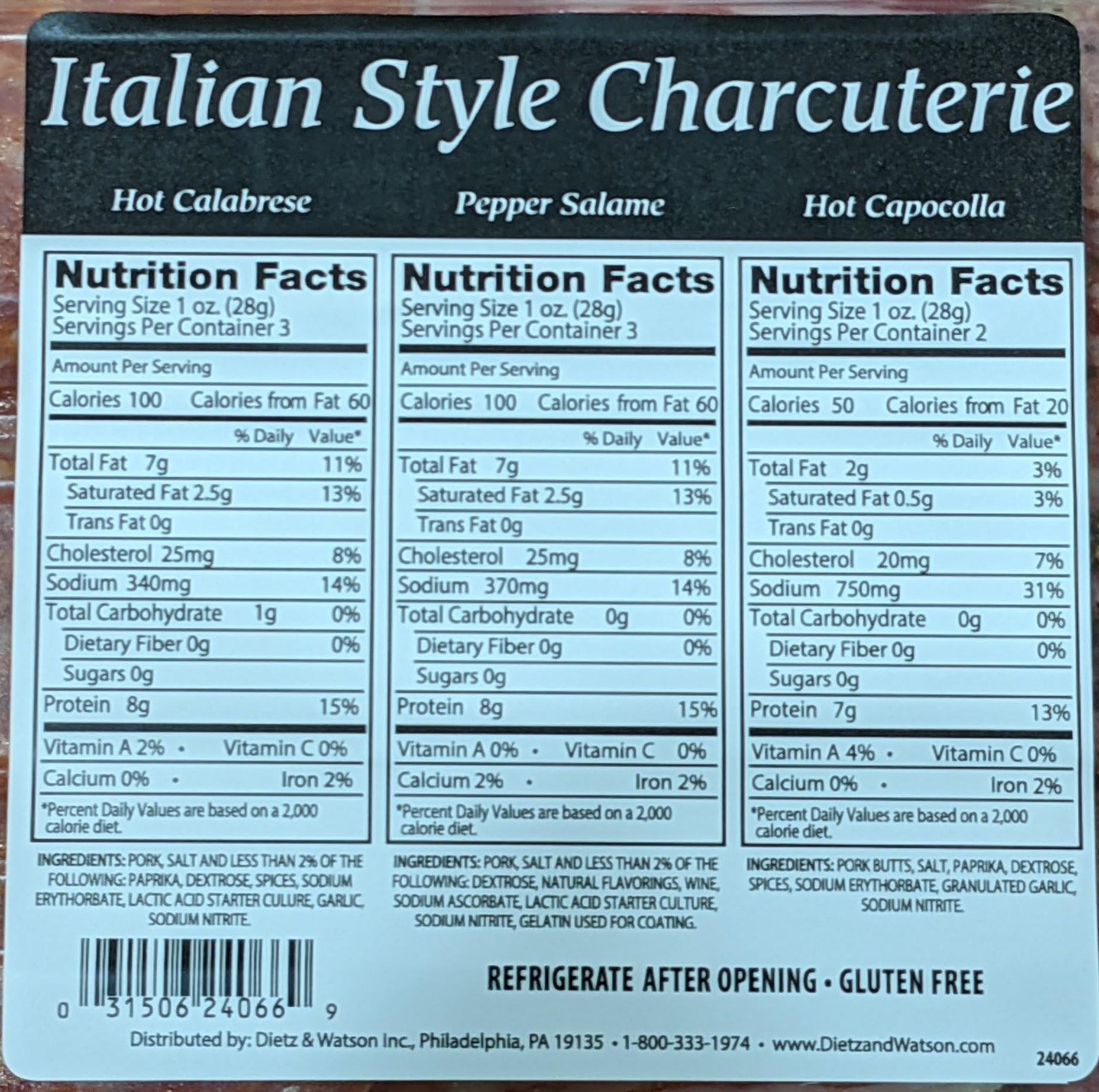 Elevate your charcuterie board with Dietz & Watson. Dietz & Watson Italian Charcuterie Pack includes our Hot Calabrese, Peppered Salami and Hot Capocolla.