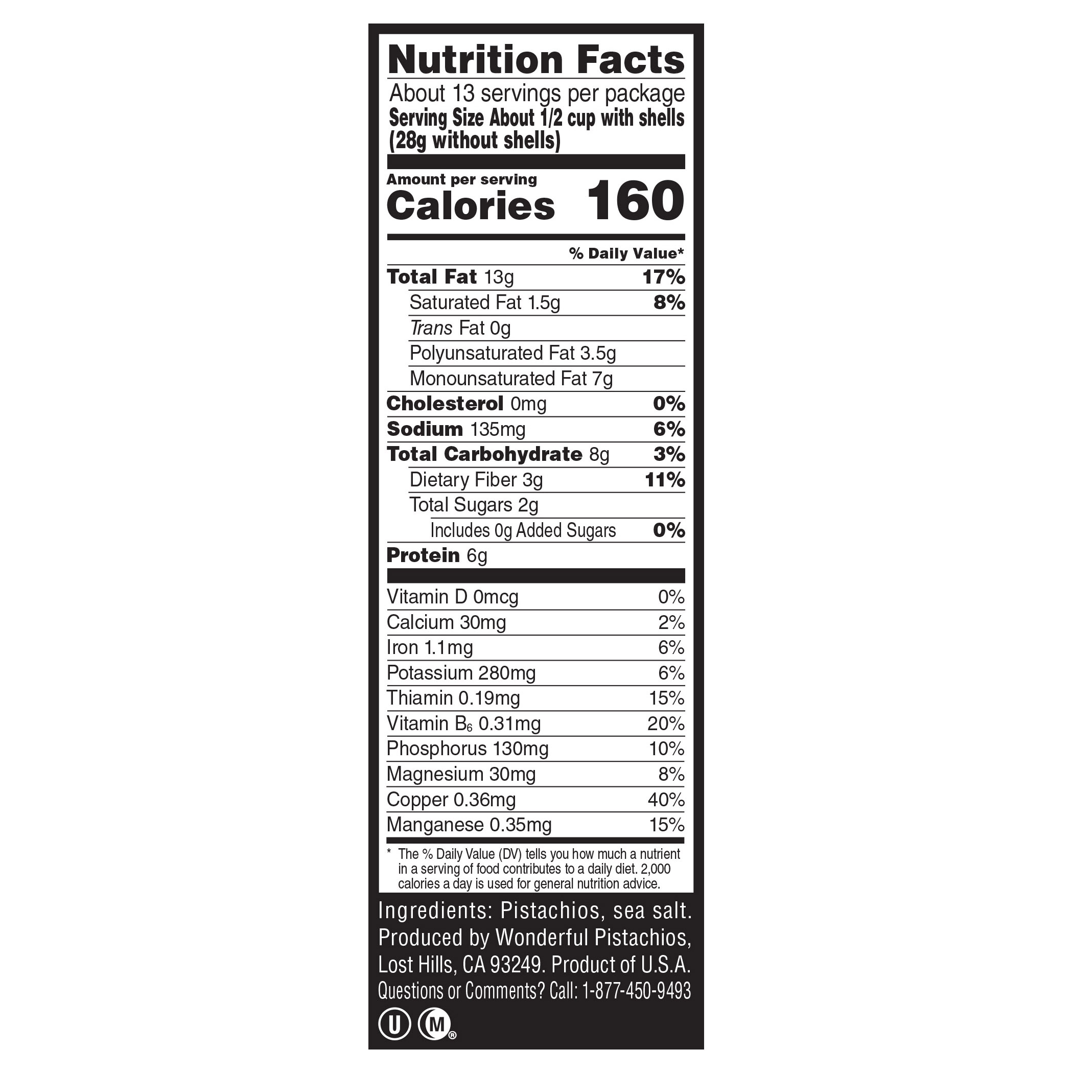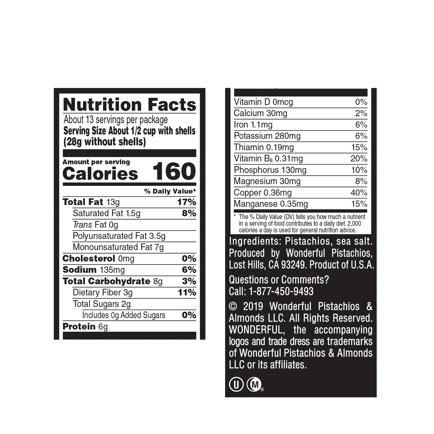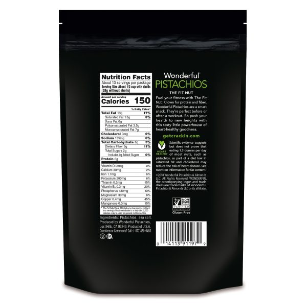 One 24 Ounce Bag of our Roasted & Salted In-Shell Wonderful Pistachios. Wonderful Pistachios are a smart, healthy choice for folks around the world. Located in California?s fertile San Joaquin Valley, Wonderful Pistachios & Almonds owns, cultivates and harvests more than 75,000 acres of pistachio and almond orchards, and delivers pounds of nuts globally each year. The warm days and cool nights work in harmony with the region?s natural soils to create the perfect growing climate. We then carefully tend and harvest each pistachio using the latest in sustainable practices.