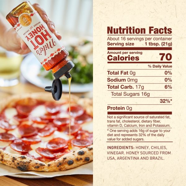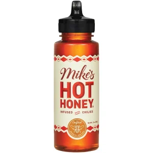 Mike?s Hot Honey is a perfect match for every taste! It combines two of nature?s most unique and wonderful flavors: honey and chili peppers. The balance of sweetness and heat adds a perfect kick to just about any food, without overwhelming it. It?s not too mild or too wild, so you can taste the flavor, not just the fire. Mike?s Hot Honey makes all your favorite food and drinks shine. Add it to fried chicken and wings, drizzle it on pizza, and use it instead of regular honey in cocktails and tea!