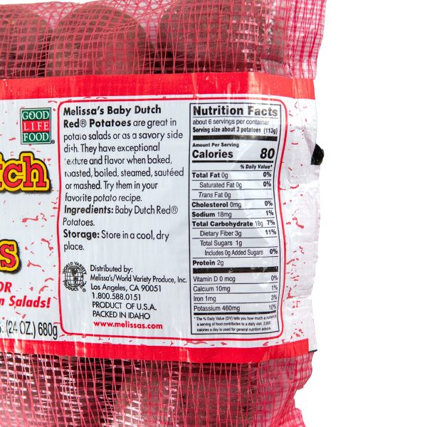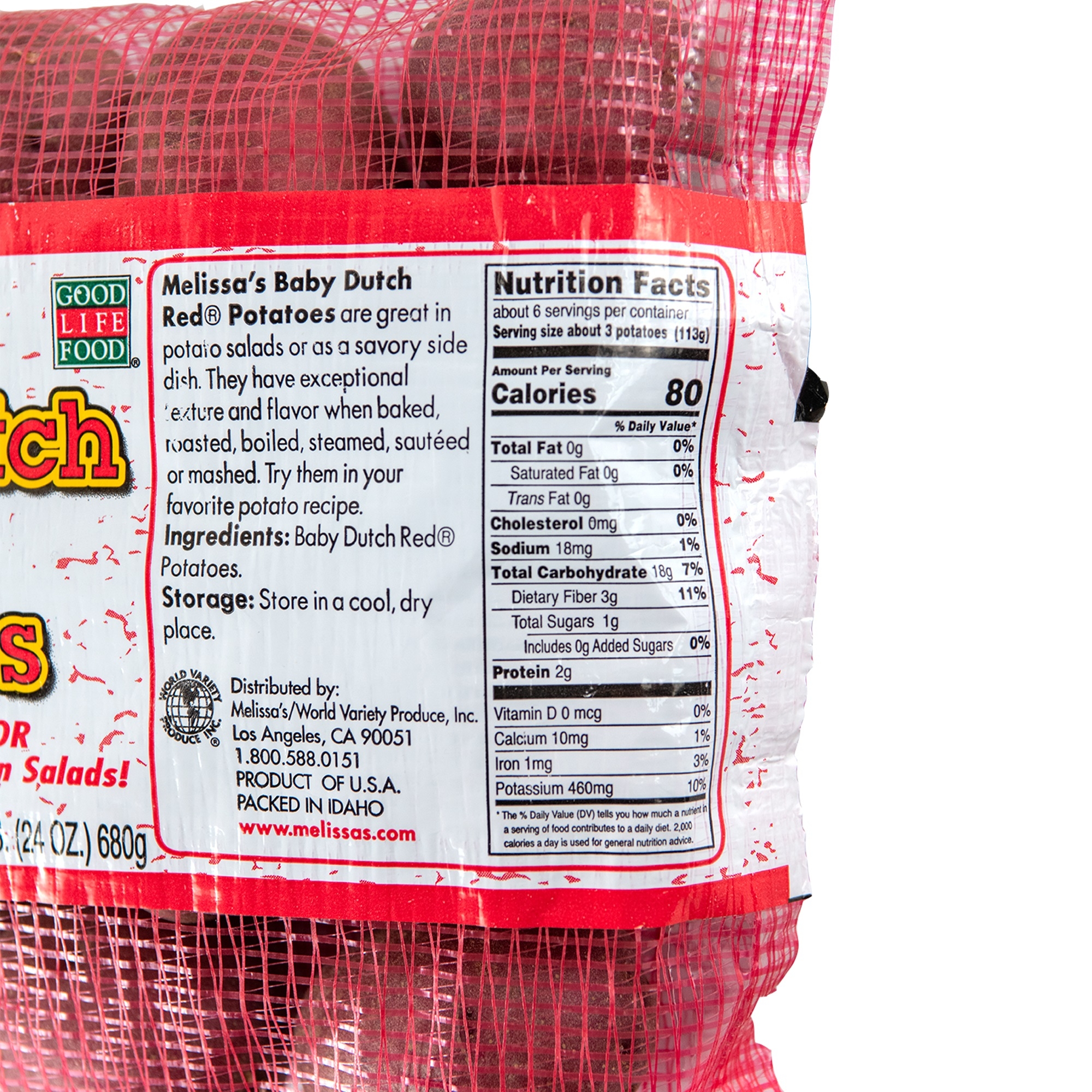 Melissa’s Baby Red Potatoes are hand selected for excellent quality. Firm, well-shaped, and smooth, these potatoes can be cooked in almost any way imaginable. They have a light, subtle flavor and creamy texture that make them the perfect side dish to chicken, fish, steak, and other delicious proteins. Simply grill, roast, or toss into salads along with your favorite seasonings. To preserve the nutrients, leave the skins on and simply scrub gently in water before cooking. Always store potatoes in a cool, well-ventilated area rather than in the refrigerator. Enjoy nutrients, flavor, and all-around deliciousness when you cook up Melissa’s Baby Red Potatoes.