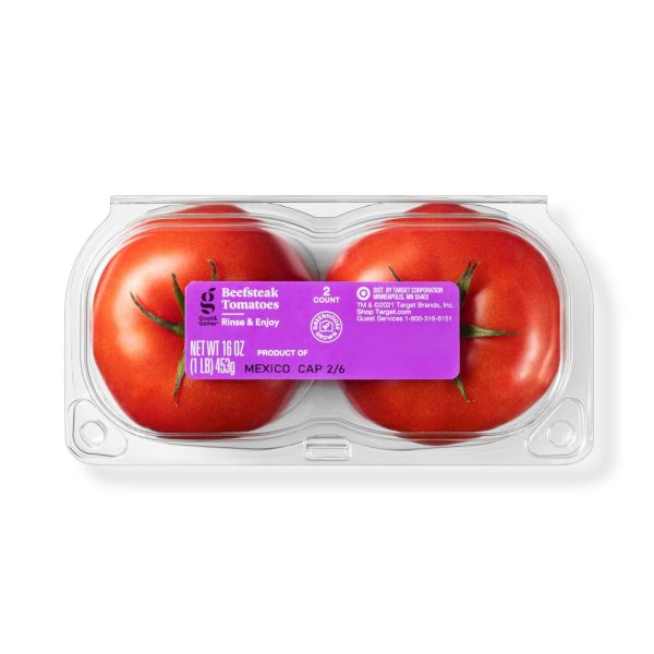 u0026bull;Beefsteak tomatoes in 2ct packu003cbru003eu0026bull;Juicy tomatoes with mild flavor for a variety of usesu003cbru003eu0026bull;Ready to eat – just rinse and enjoyu003cbru003eu0026bull;Great for slicing to top sandwiches, burgers and more, or using in saucesu003cbru003eu0026bull;Greenhouse grownu003cbru003eu0026bull;BRAND AND PACKAGING MAY VARY