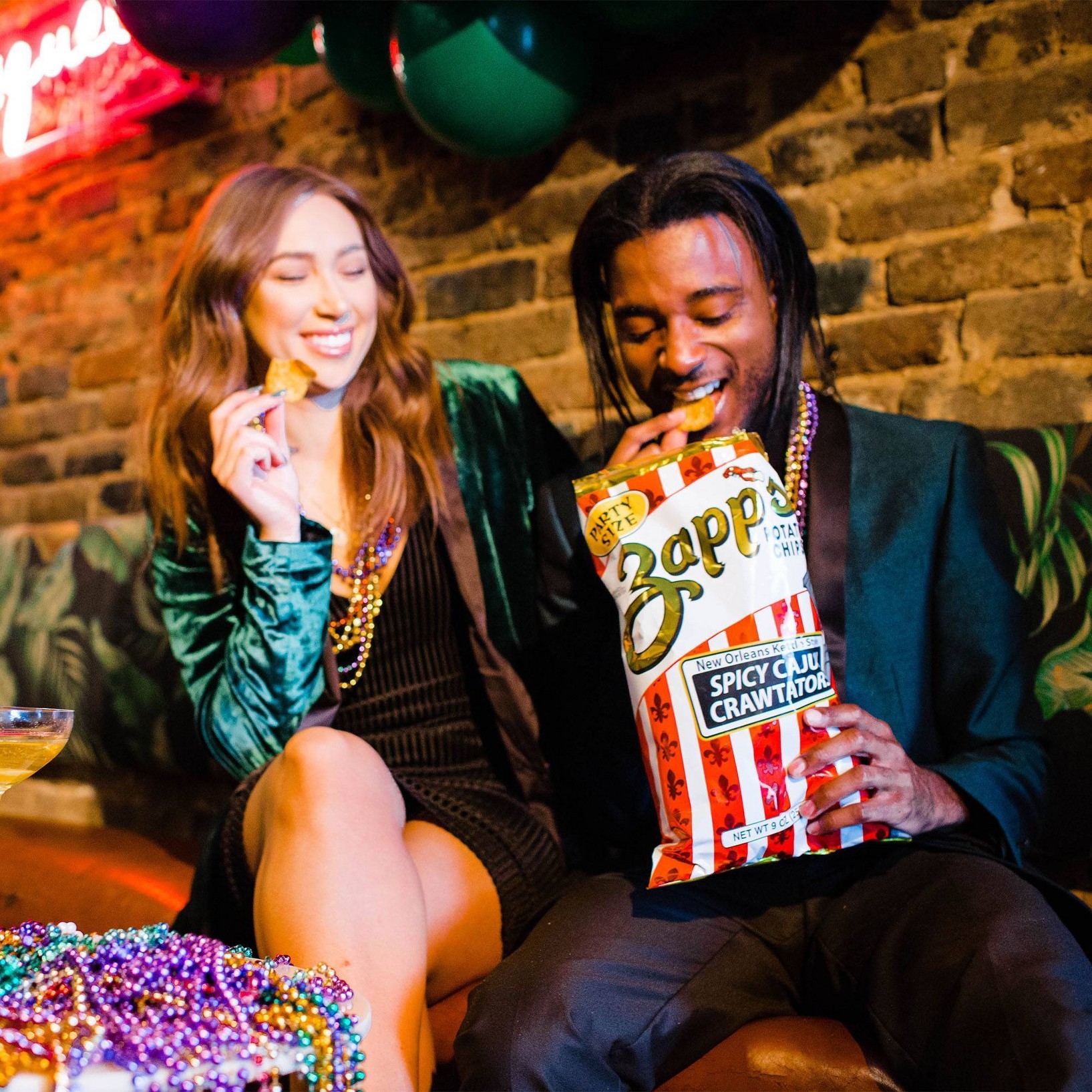 u0026bull;Zapp’s Kettle cooked potato chips are cooked one batch at a time combined with our premium ingredients, results in a crunchier, tastier potato chip that has a cult followingu003cbru003eu0026bull;These chip bags are perfect for school or lunch boxes, to bring with you while on the go or just keep in your pantry for when a craving strikesu003cbru003eu0026bull;Enjoy these delicious, crunchy potato chips without any of the guilt. They’re cooked in a peanut oil blend, and are gluten, cholesterol and trans fat free.u003cbru003eu0026bull;BORN ON THE BAYOU – Add some spice and excitement to your next snack or meal! Since 1985, Zapp’s Chips has been delivering the flavor and spirit of Mardi Gras right to your door, complete with authentic Cajun seasonings and unique New Orleans style.u003cbru003eu0026bull;Zapp’s Spicy Cajun Crawtators New Orleans Kettle Style Potato Chips