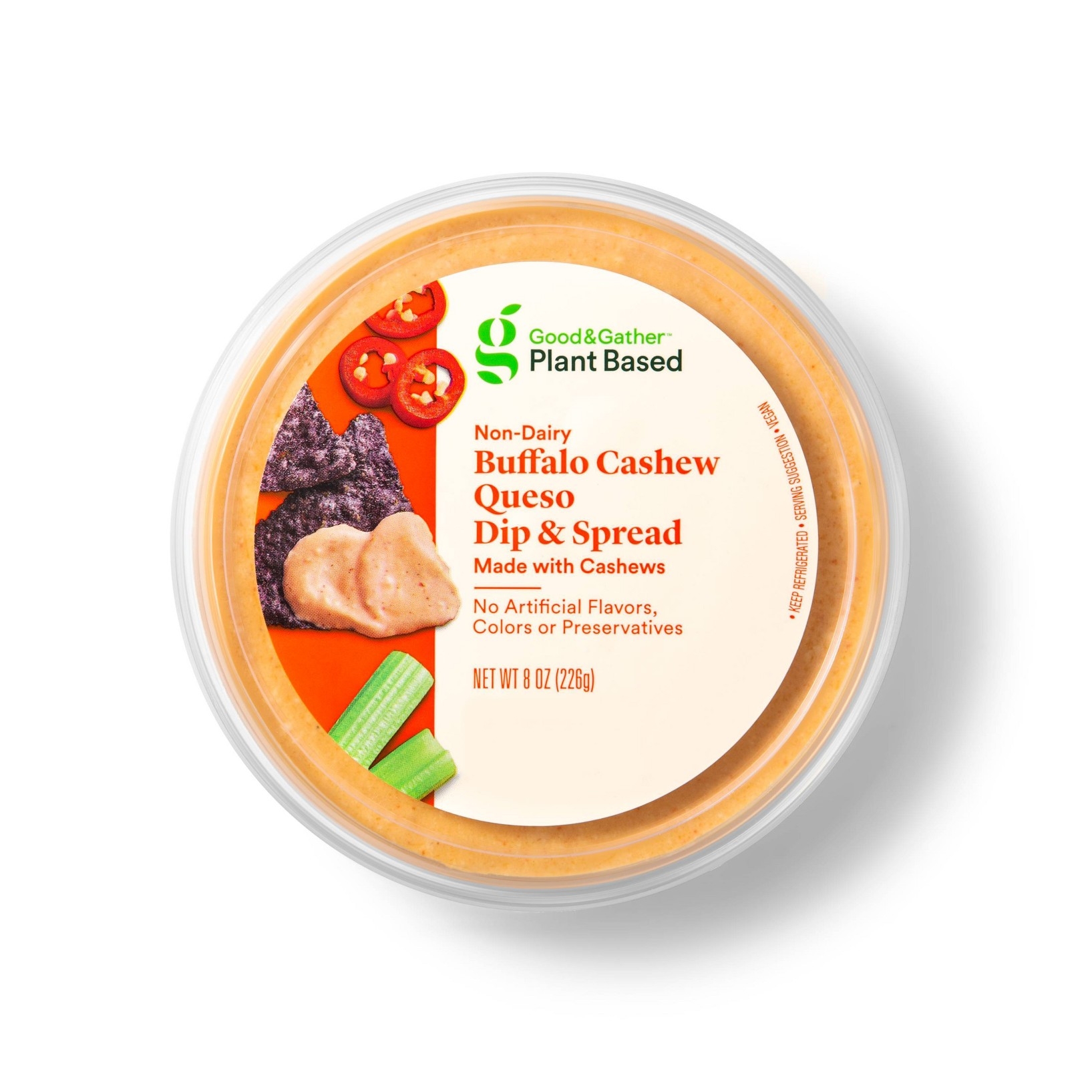 u0026bull;Good u0026 Gather plant-based dipu003cbru003eu0026bull;Buffalo cashew queso brings tangy, cheese-like flavorsu003cbru003eu0026bull;Great as a veggie dip, savory spread or sandwich topperu003cbru003eu0026bull;Vegan and non-dairyu003cbru003eu0026bull;No artificial flavors, colors or preservatives