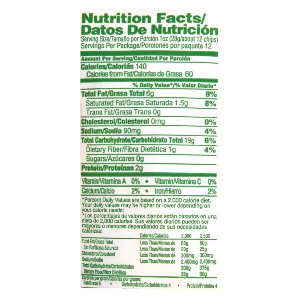 u0026bull;One 12oz bag of Calidad White Corn Tortilla Chipsu003cbru003eu0026bull;Made with traditional ingredients and cooking methodsu003cbru003eu0026bull;0g of trans fats per servingu003cbru003eu0026bull;Certified gluten freeu003cbru003eu0026bull;Perfect for any authentic Mexican recipe