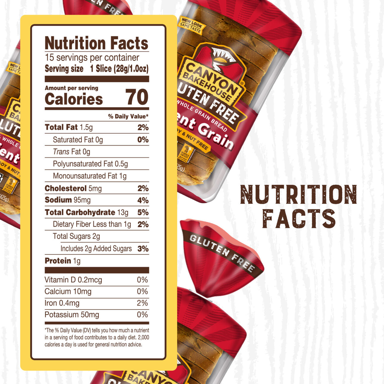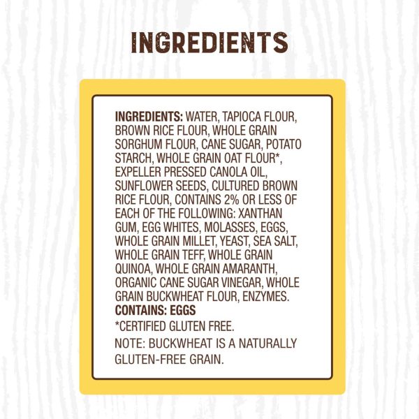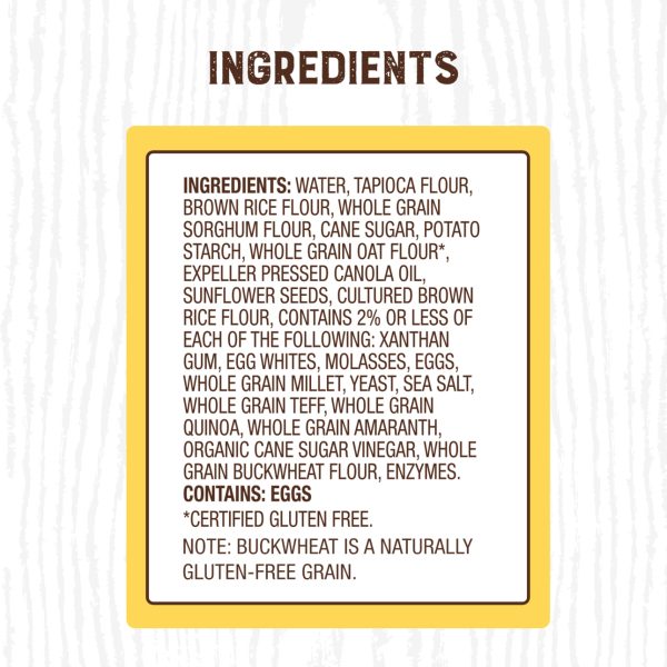Enjoy the timeless flavor of Canyon Bakehouse? Gluten Free Ancient Grain Sandwich Bread ? baked with ancient whole grains, including sorghum, millet, amaranth and teff. This 100% whole grain bread is certified gluten free without compromising taste or quality. Plus, it’s free from allergens like dairy, nuts and soy so your family can enjoy that bakery bread taste without hesitation. Find Canyon Bakehouse Ancient Grains Bread in the fresh bread aisle and eat within five days of opening the inner bag. Baked with subtle sweetness, these multigrain bread slices make a delicious canvas for any sandwich or toast creation. Grab a whole grain bread loaf to take your family from weekday breakfast to school lunches and beyond. Your whole family will love Canyon Bakehouse gluten free products, including gluten free bagels, English muffins, hamburger buns and more. For more than 10 years, Canyon Bakehouse has raised the bar on gluten free baking, making delicious offerings the whole family will enjoy ? so everyone can Love Bread Again?.