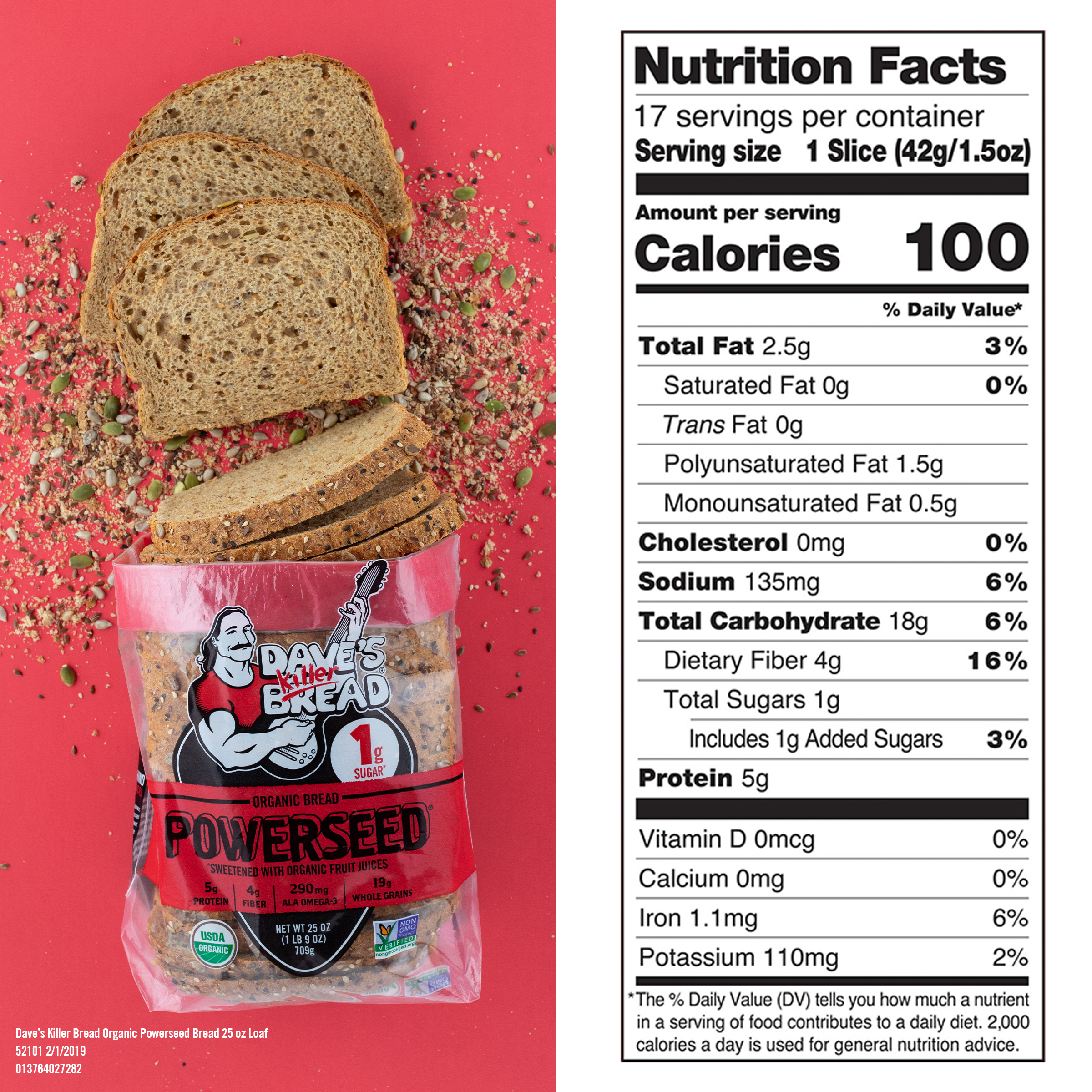 Dave’s Killer Bread Powerseed Organic Bread Loaf, 25 oz, 17 Count