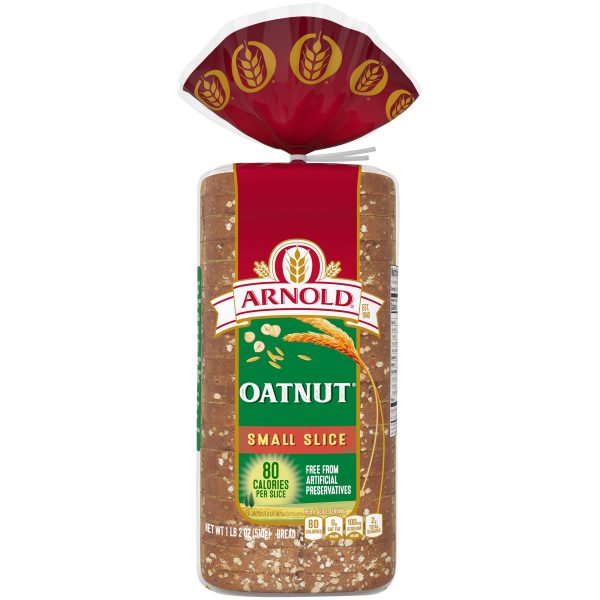 Finally, your favorite Arnold variety available in a smaller slice format! We know that sometimes you just need a little bit of bread. That’s why our Small Slice Oatnut has the same Arnold Oatnut recipe you love, but is freshly baked in a smaller pan to pamper your cravings. With 80g of Calories per slice, you can now enjoy Oatnut’s slightly sweet, yet nutty taste, perfectly complemented by oat and hazelnut inclusions in every slice.