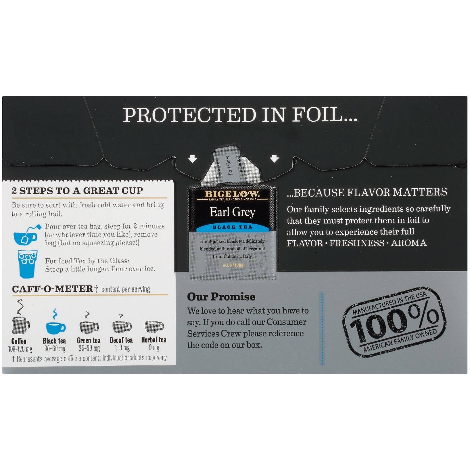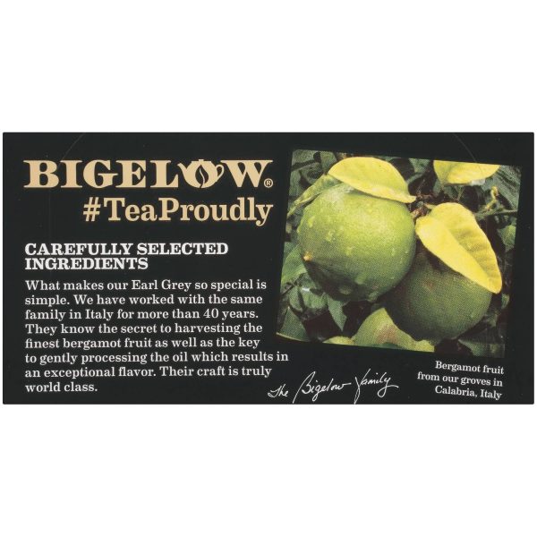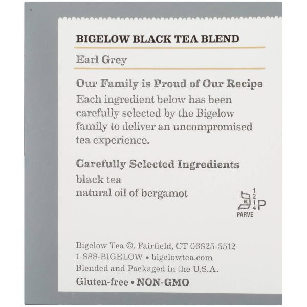 u0026bull;Bigelow Earl grey, Black Tea, Tea Bags, 20 Ctu003cbru003eu0026bull;Hand Picked tea leaves from high elevation gardens expertly blended with pure bergamot oil from Calabria, Italyu003cbru003eu0026bull;20 Tea bags, individually wrapped in foil pouches for peak flavor, freshness and aromau003cbru003eu0026bull;Gluten–free, Non-GMO, Kosher Parve, Kosher for Passoveru003cbru003eu0026bull;Bigelow Tea is Family Owned and Blended u0026 Packaged in the USA since 1945u003cbru003eu0026bull;Each Ingredient has been carefully selected by the Bigelow Family to deliver an uncompromised quality tea experienceu003cbru003eu0026bull;Bigelow Tea is proud to be a Certified B Corporation! We meet the highest verified standards of social and environmental performance, transparency, and accountability