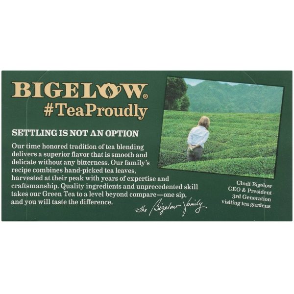 u0026bull;Bigelow Classic Green Tea, Tea Bags, 20 Ctu003cbru003eu0026bull;Hand picked tea leaves for a smooth balanced delicate taste.u003cbru003eu0026bull;Our classic green tea is simply unmatchedu003cbru003eu0026bull;20 Tea bags, individually wrapped in foil pouches for peak flavor, freshness and aromau003cbru003eu0026bull;Gluten–free, Non-GMO, Kosher Parve, Kosher Passoveru003cbru003eu0026bull;Bigelow Tea is Family Owned and Blended u0026 Packaged in the USA since 1945u003cbru003eu0026bull;Each Ingredient has been carefully selected by the Bigelow Family to deliver an uncompromised quality tea experienceu003cbru003eu0026bull;Bigelow Tea is proud to be a Certified B Corporation! We meet the highest verified standards of social and environmental performance, transparency, and accountability