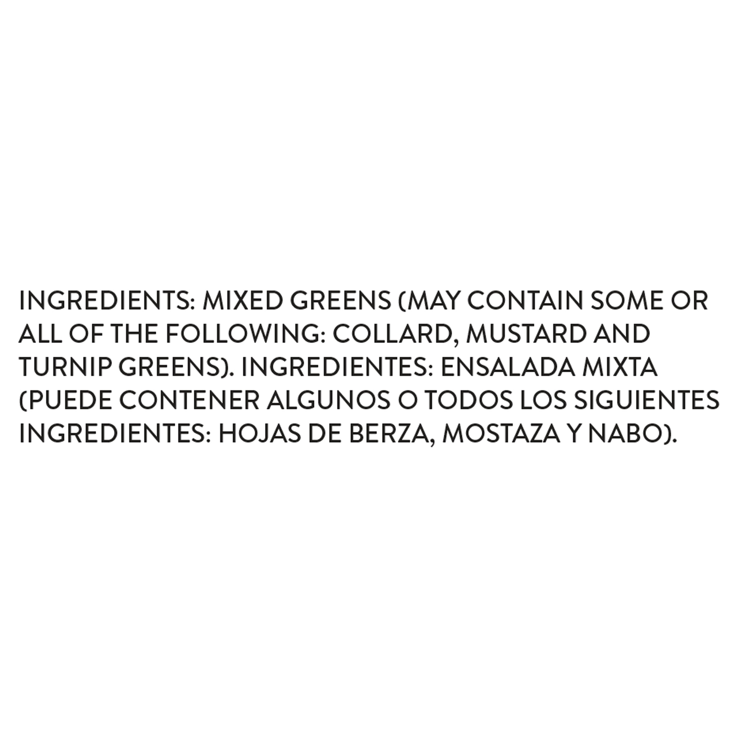 Fresh Mixed Greens are the perfect addition to your dishes. They are packed full of minerals and nutrients making them an excellent healthy option to add to your meals. They may contain some or all turnip greens, mustard greens, and collard greens. These mixed greens are a versatile ingredient that can be transformed in many ways. Sautee them with a bacon and onions for a delicious side dish or use the mix as a base for the salad with grilled chicken, tomatoes, and sliced cucumbers topped with your favorite dressing for a healthy salad. This bag of mixed greens is pre-washed for your convenience and makes it easy to add them to your meals. Elevate mealtime with Fresh Mixed Greens.