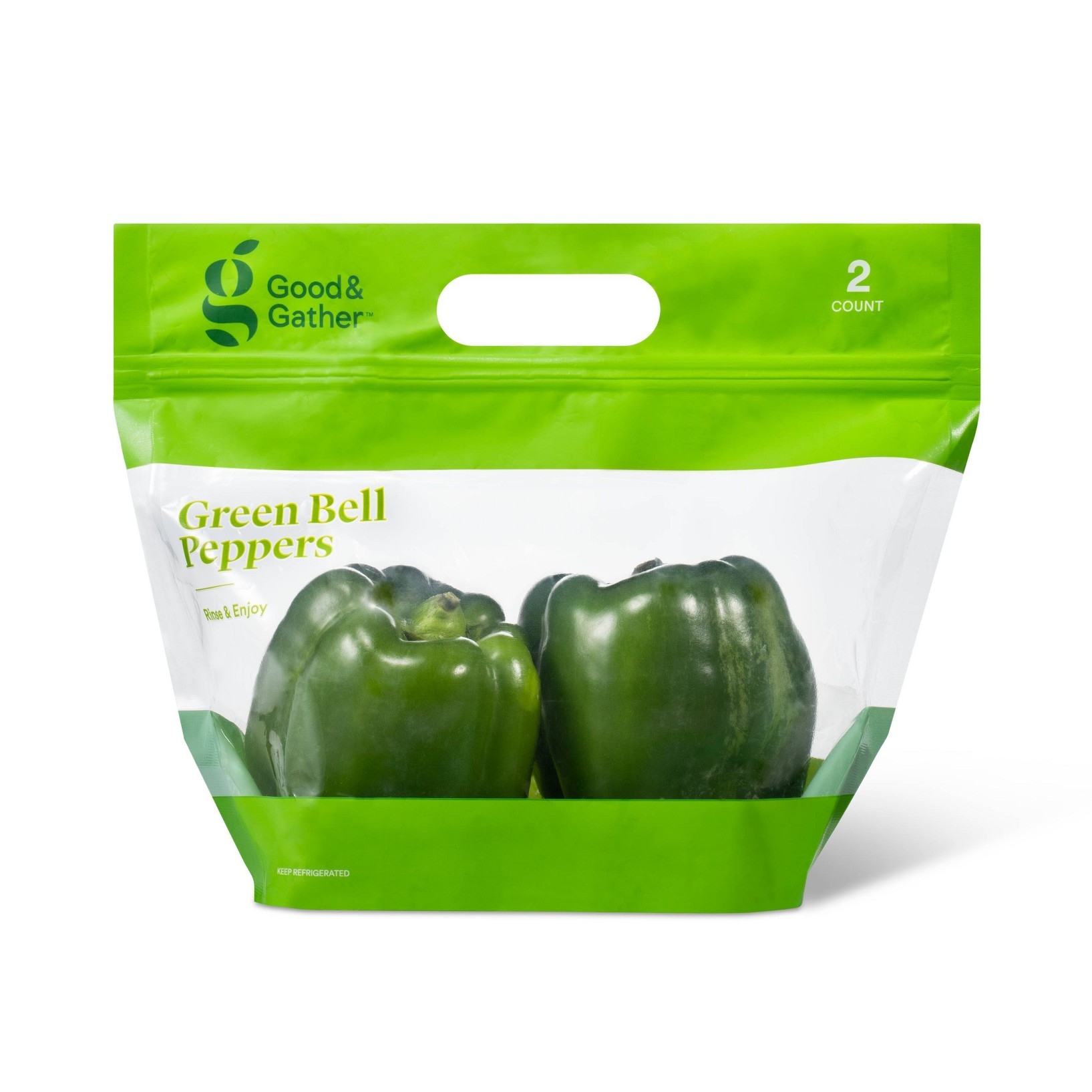u0026bull;Green bell peppers in convenient 2ct packu003cbru003eu0026bull;Great for use in a variety of your favorite recipesu003cbru003eu0026bull;Can also be sliced and enjoyed raw with your go-to veggie dipsu003cbru003eu0026bull;Ready to eat — just rinse and enjoyu003cbru003eu0026bull;BRAND AND PACKAGING MAY VARY