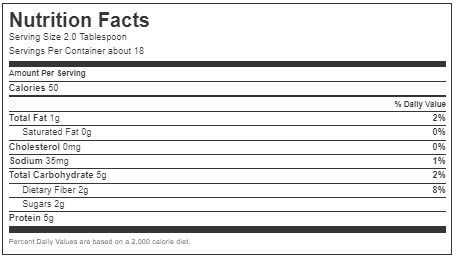 93% less fat (Per serving) than out smooth almond butter. 5 g protein (Per serving). 1 g fat (Per serving). 50 cals (Per serving). Non GMO Project verified. Nongmoproject.org. Made with naturally defatted almonds. Why unsweetened powdered almond butter? 93% less fat (Per serving) (Than our smooth almond butter). 37% fewer carbs (Per serving) (Than our smooth almond butter). 50 calories (Per serving). 5 grams per protein (Per serving). Expeller-pressed. Naturally processed. Certified gluten-free. Peanut free. Certified Vegan: American Vegetarian Association. Certified Paleo. Compare to our Smooth Almonds butter, fat has been decreased from 15 g to 1 g per serving; total carb. has been decreased from 8 g to 5 g per serving. barneybutter.com. Follow Us: Facebook. Twitter. Instagram. Pinterest. BPA free. Made in the USA.