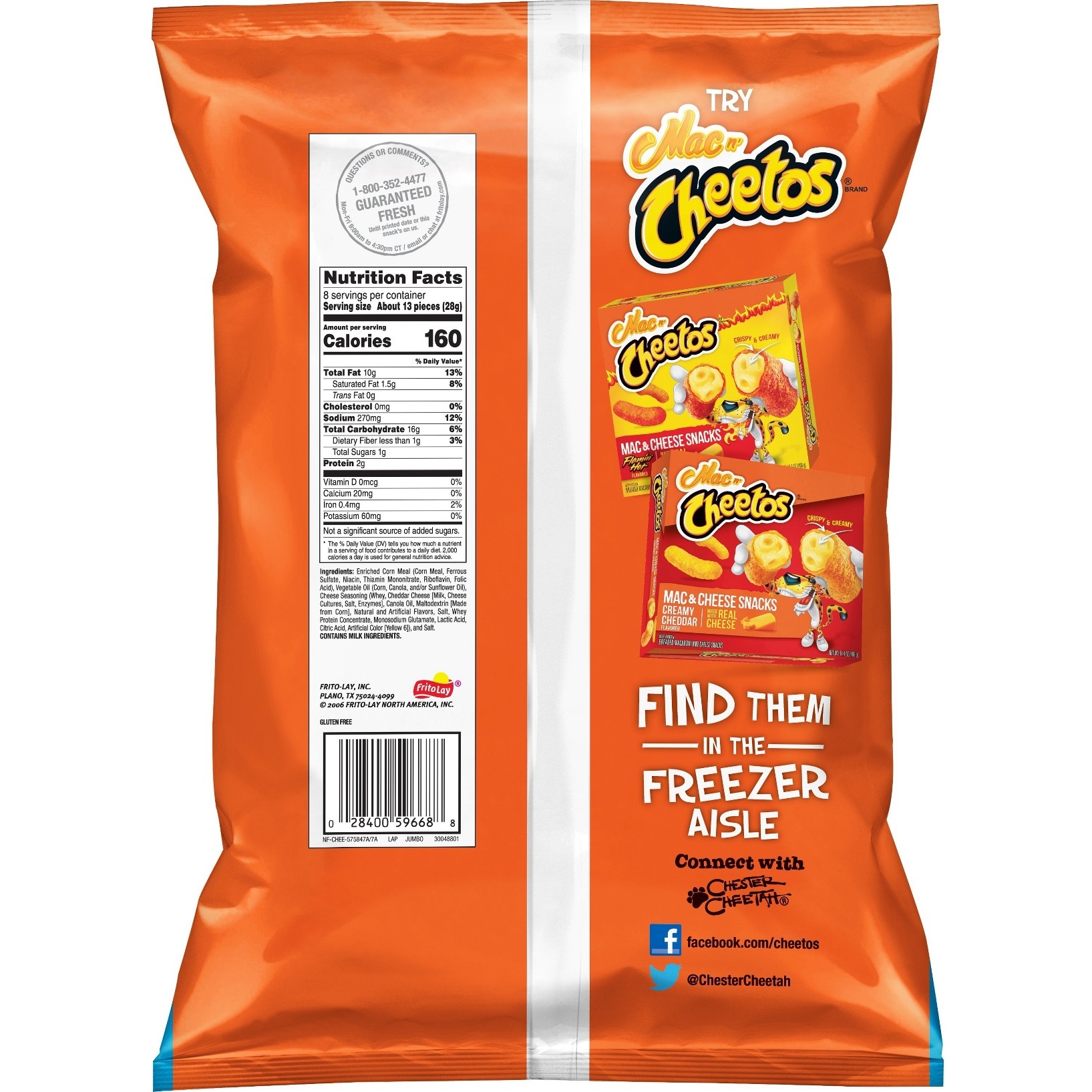 CHEETOS snacks are the much-loved cheesy treats that are fun for everyone! Cheetos jumbo puffs give you just the right amount of crunch. You just can’t eat a CHEETOS snack without licking the “cheetle” off your fingertips. And wherever the CHEETOS brand and CHESTER CHEETAH go, cheesy smiles are sure to follow. Perfect to share or have for yourself!u003cbr /u003e