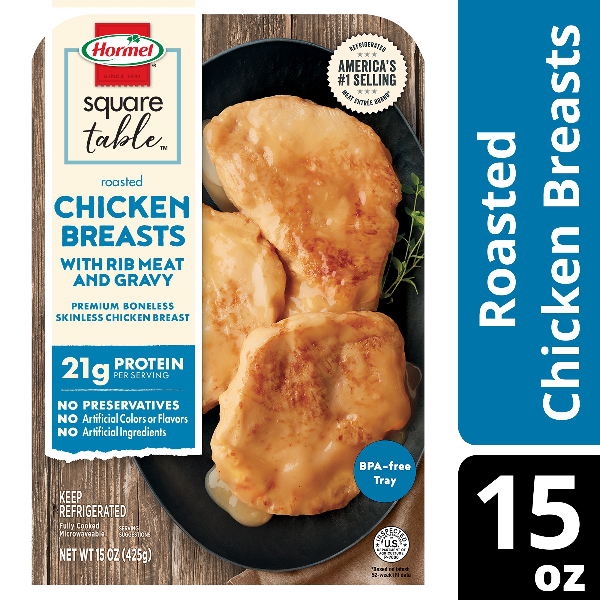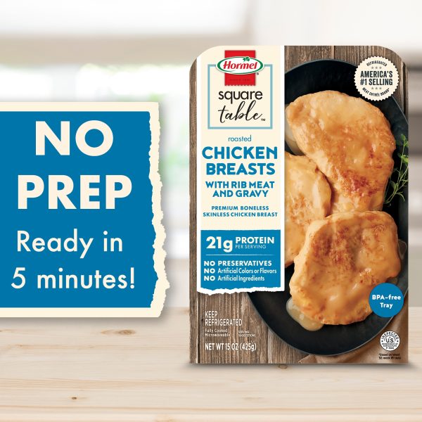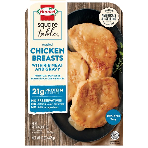 The list of hearty, wholesome dishes you can make with HORMEL SQUARE TABLE Roasted Chicken Breasts & Gravy is nearly endless: serve over biscuits for a Southern-style classic, or pair with mashed potatoes or rice for a quick family favorite. And what makes an easier or heartier family dinner than the timeless classic of HORMEL Roasted Chicken Breasts & Gravy over egg noodles? With so many easy, delicious possibilities, it’s no wonder that HORMEL is America’s No 1 selling refrigerated entrée brand!* Spend less time in the kitchen preparing and more time at the dinner table making memories with your family with the convenience of HORMEL SQUARE TABLE entrées. *Based on latest 52-week IRI data. All trademarks, logos and images are owned by Hormel Foods Corporation, its subsidiaries and affiliates. Copyright Hormel Foods, LLC.